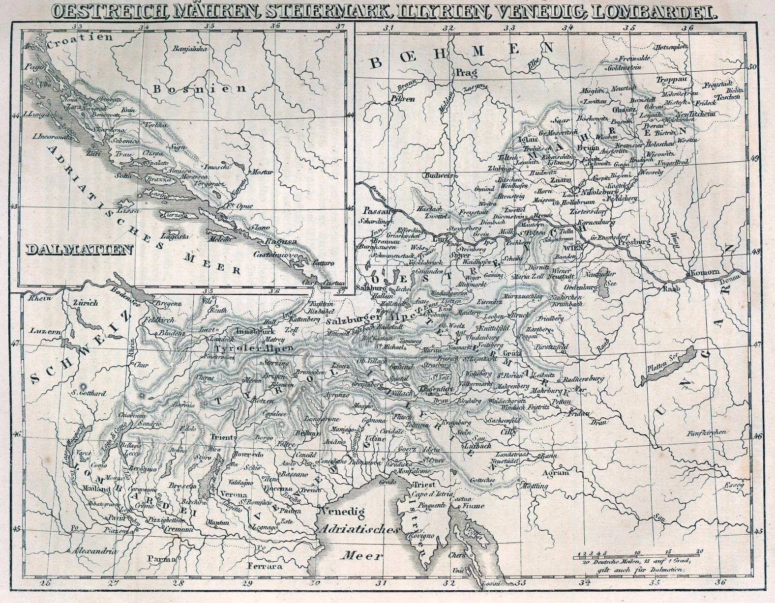 Oostenrijk, Moravië, Stiermarken, Illyrië, Venetië, Lombardije /