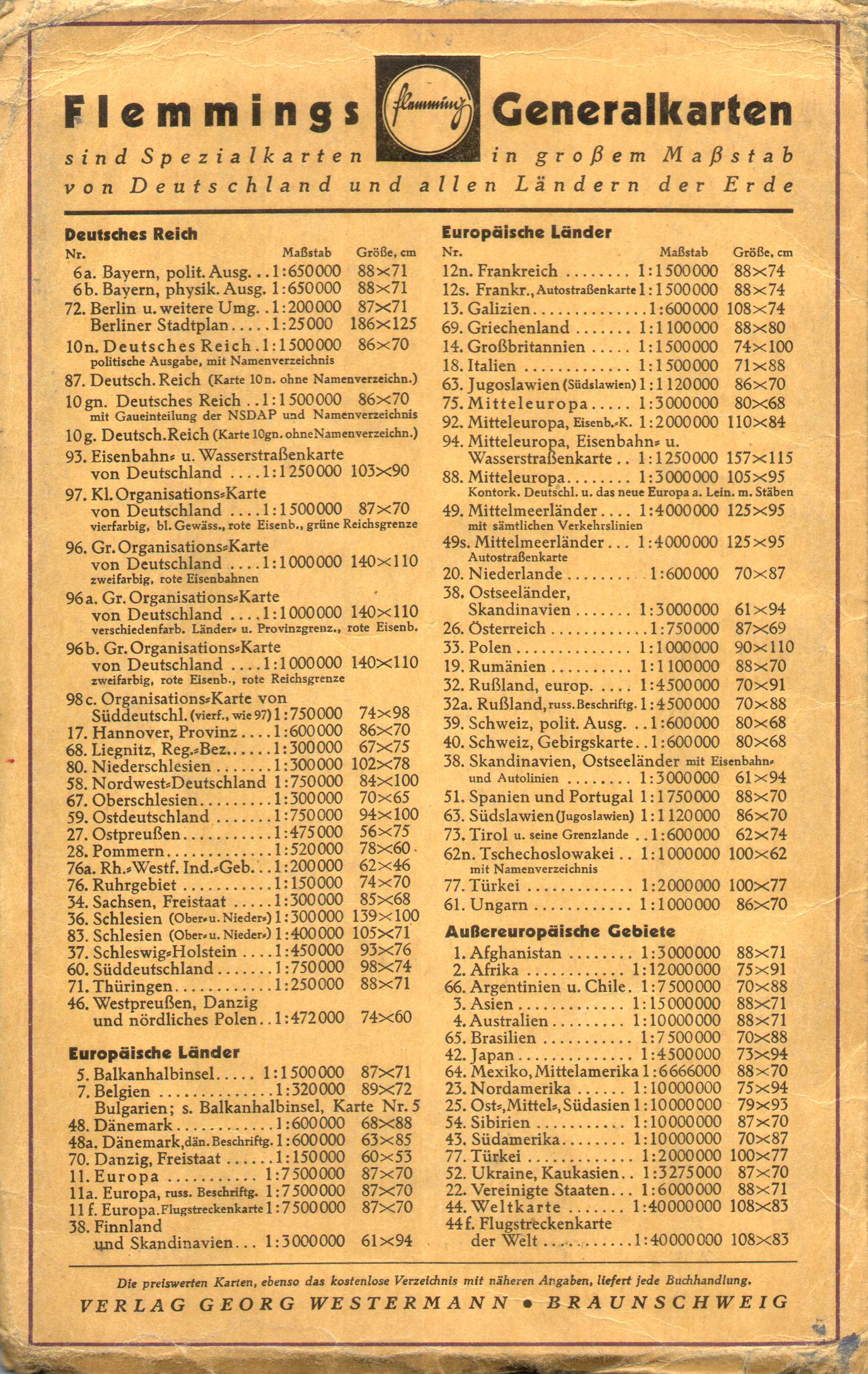Flemmings Generalkarten, 1932 - ca. 1940 (Westermann)