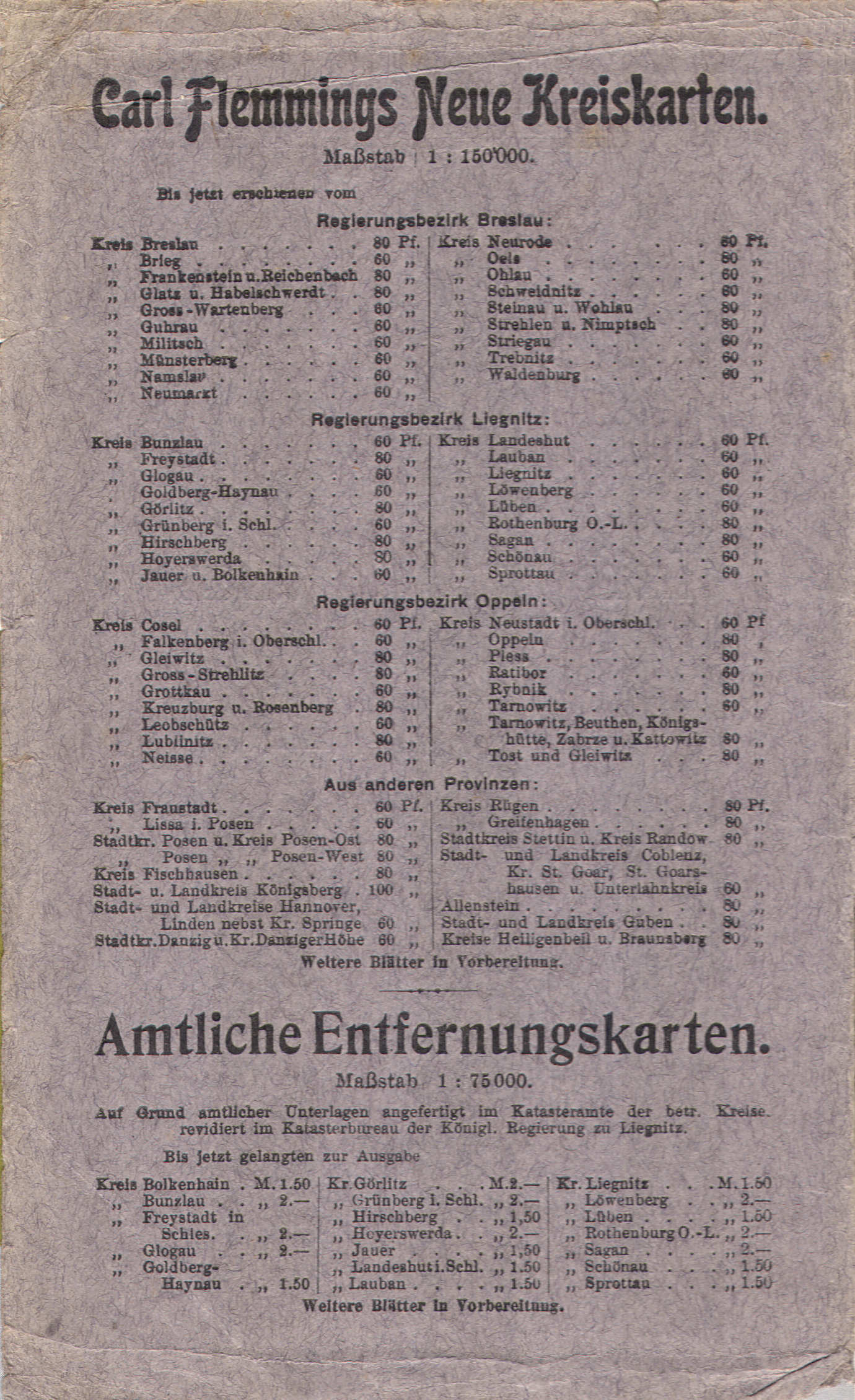 Flemmings Handkarte / Heimatkarte von Schlesien (c. 1900 - c. 1940)