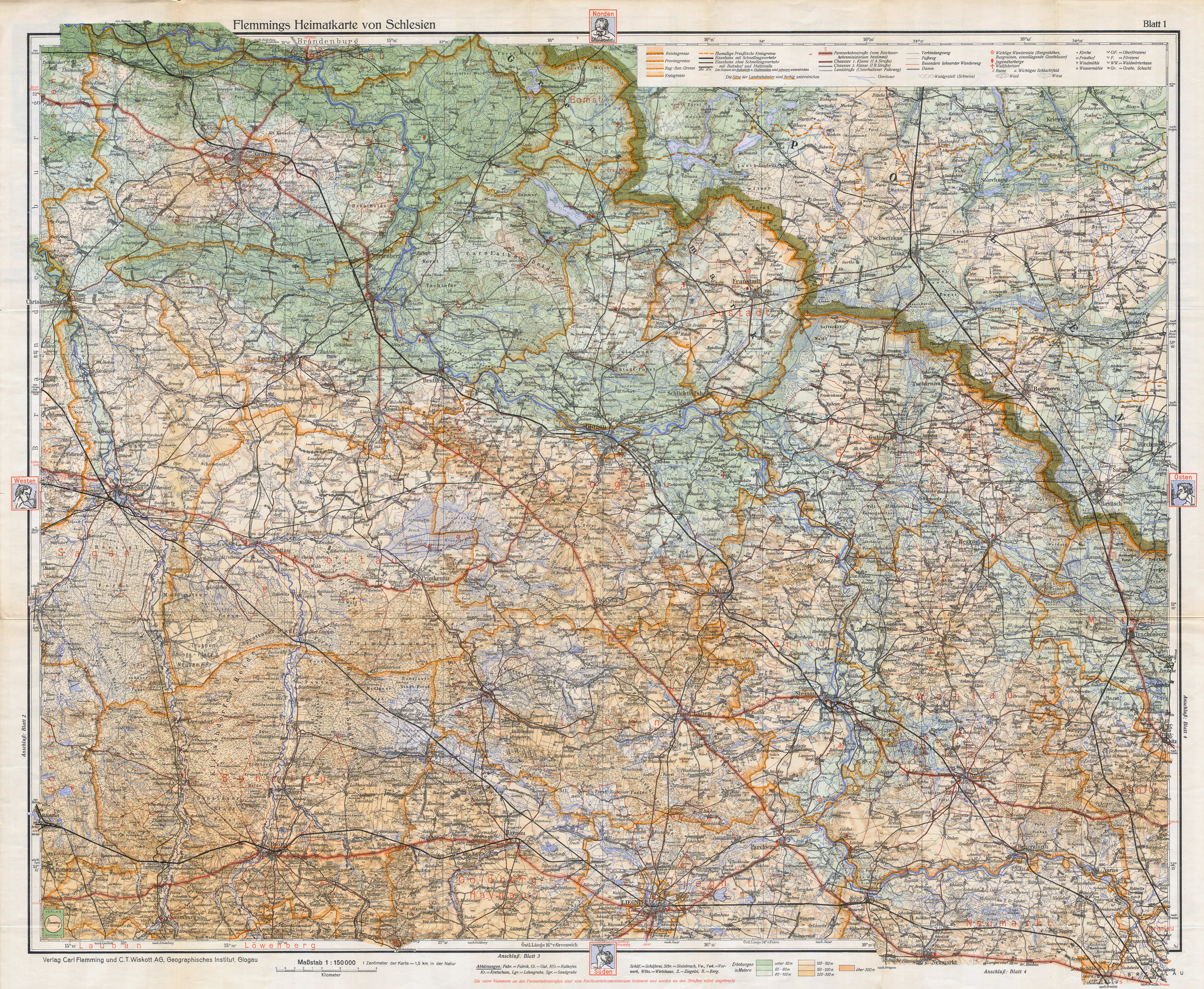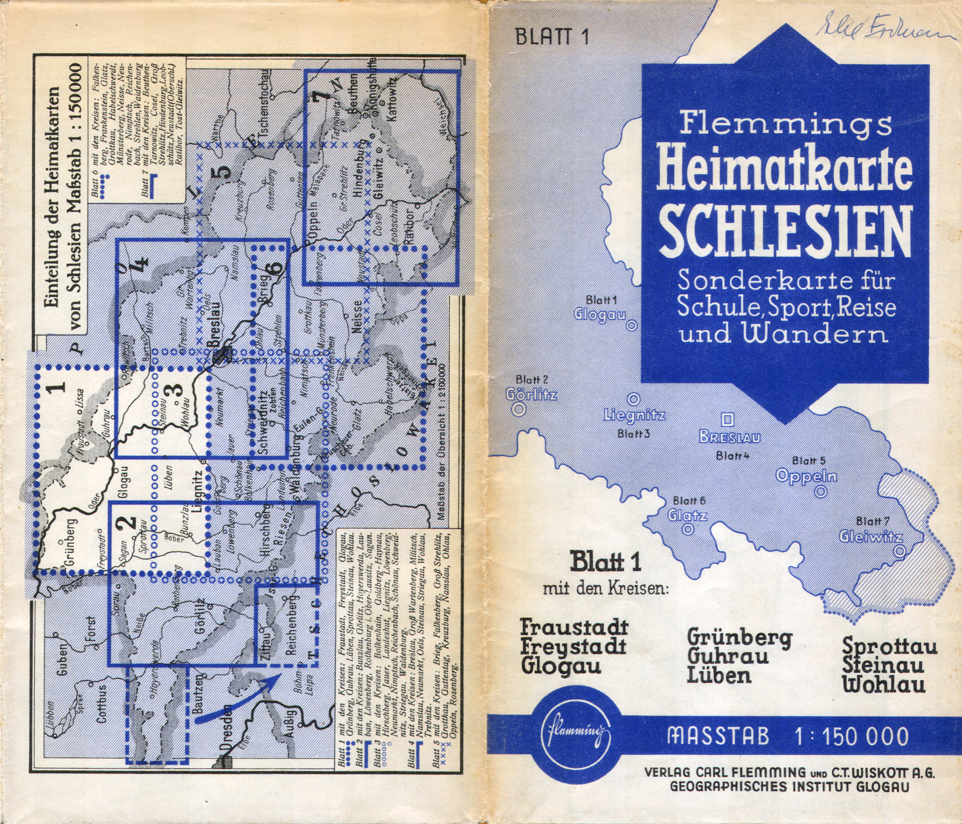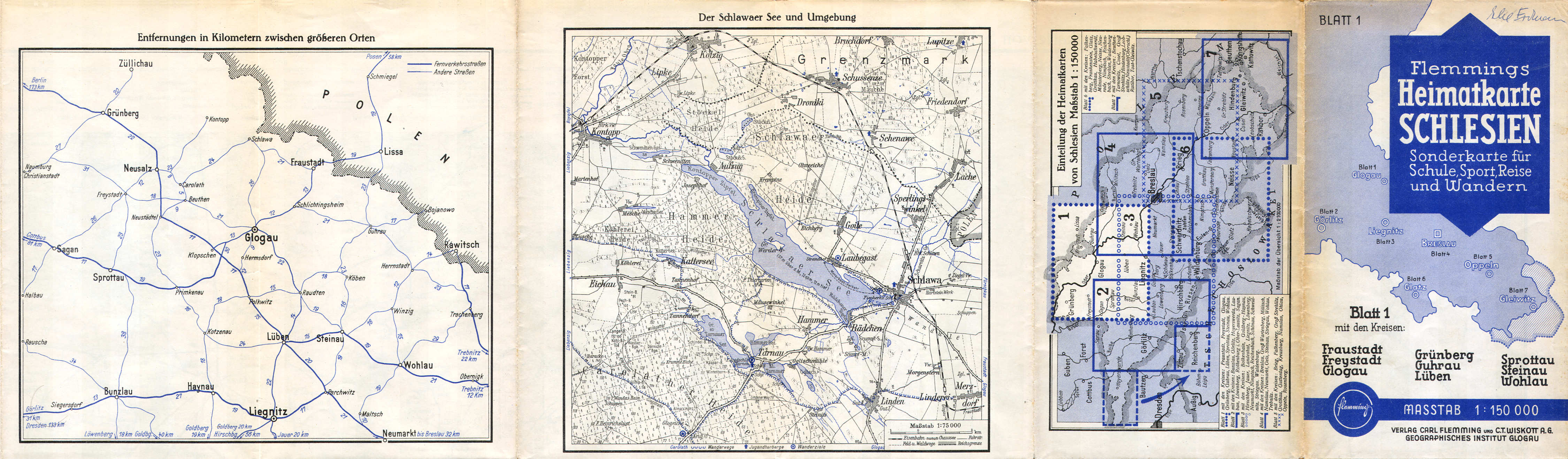 Flemmings Handkarte / Heimatkarte von Schlesien (ca. 1900 - ca. 1940)