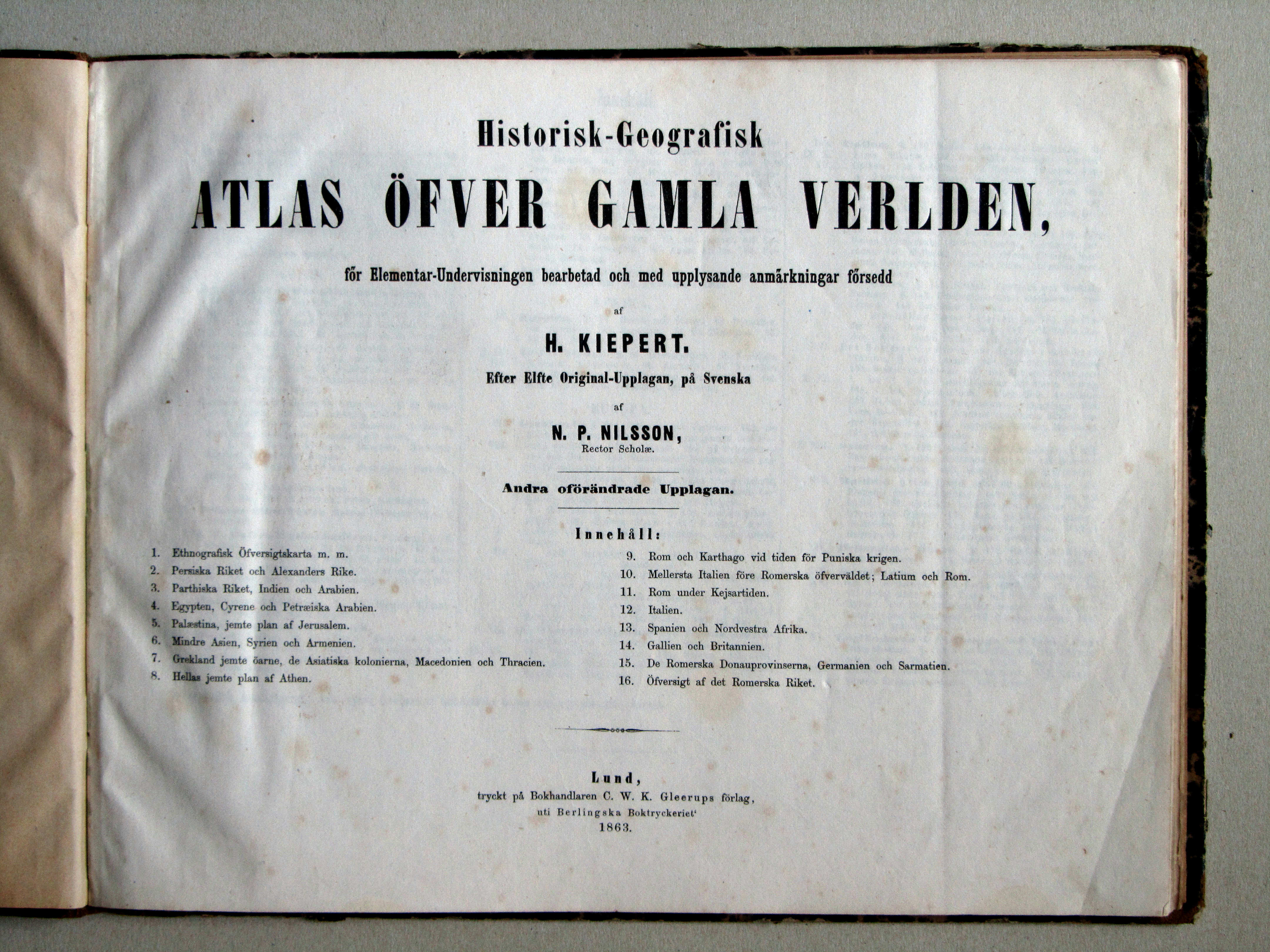Lund, printed by C.W.K. Gleerups publishers and booksellers, at the Berlingska printing house 1863.