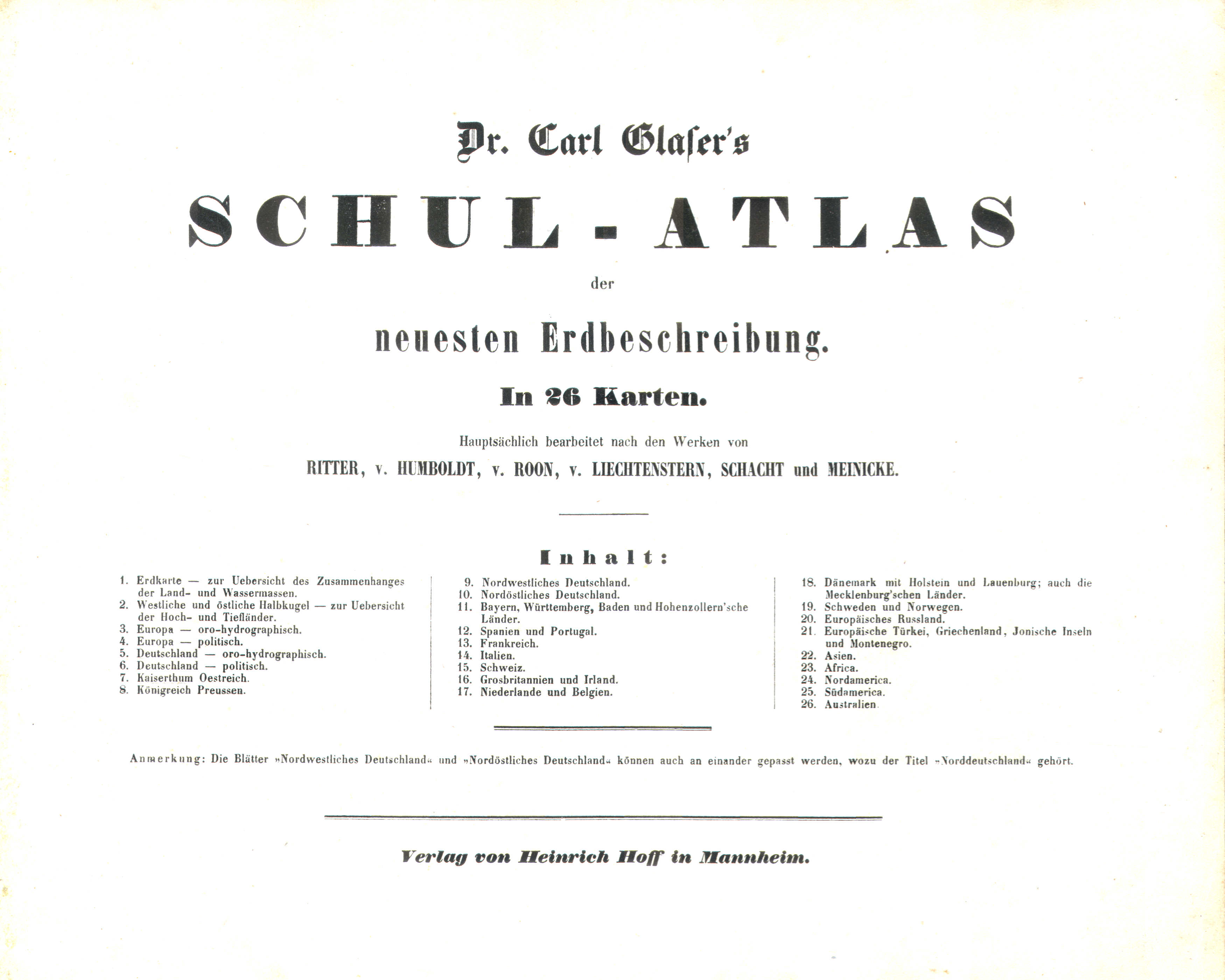 Glaser's Schul-Atlas, 1e druk (1846)