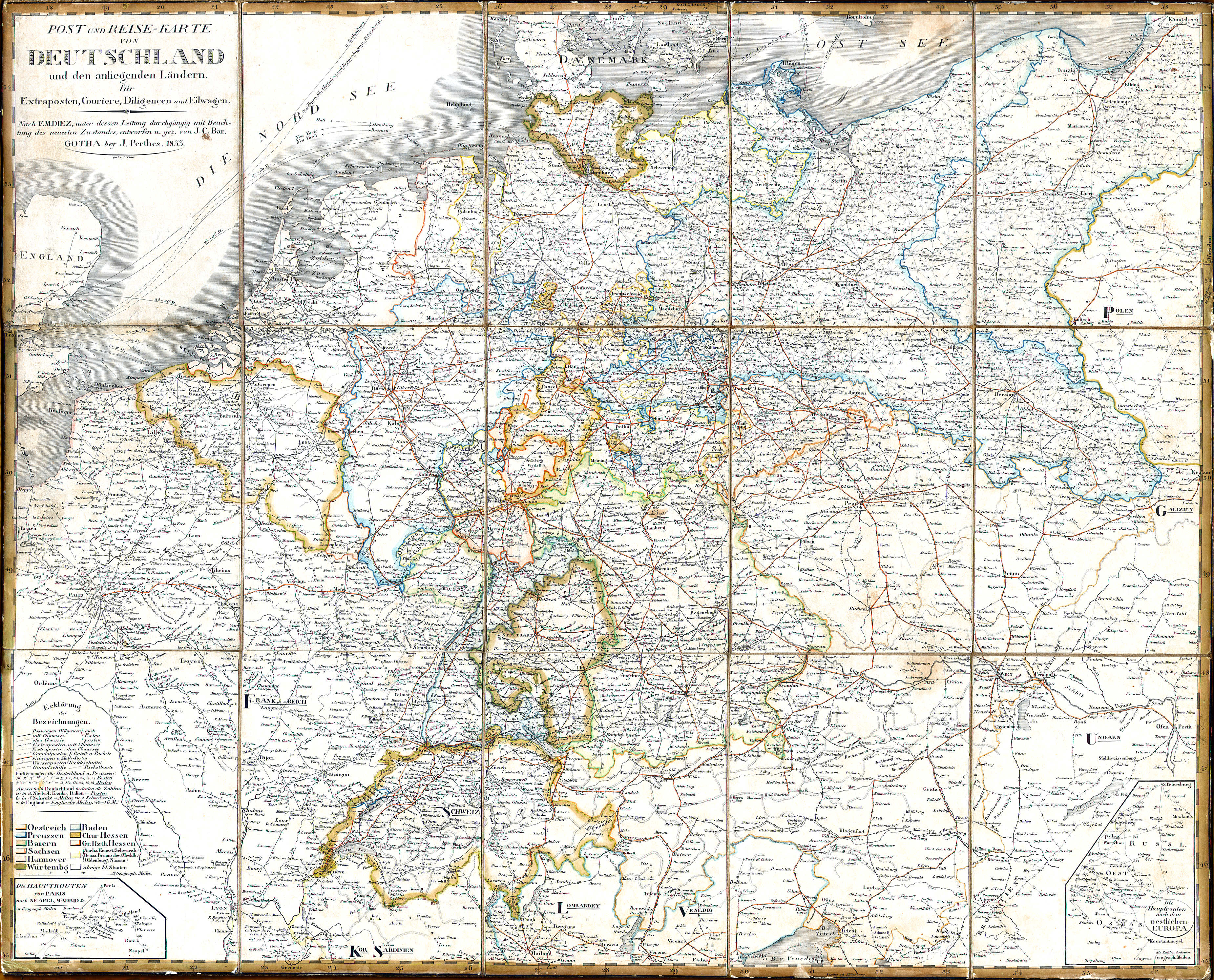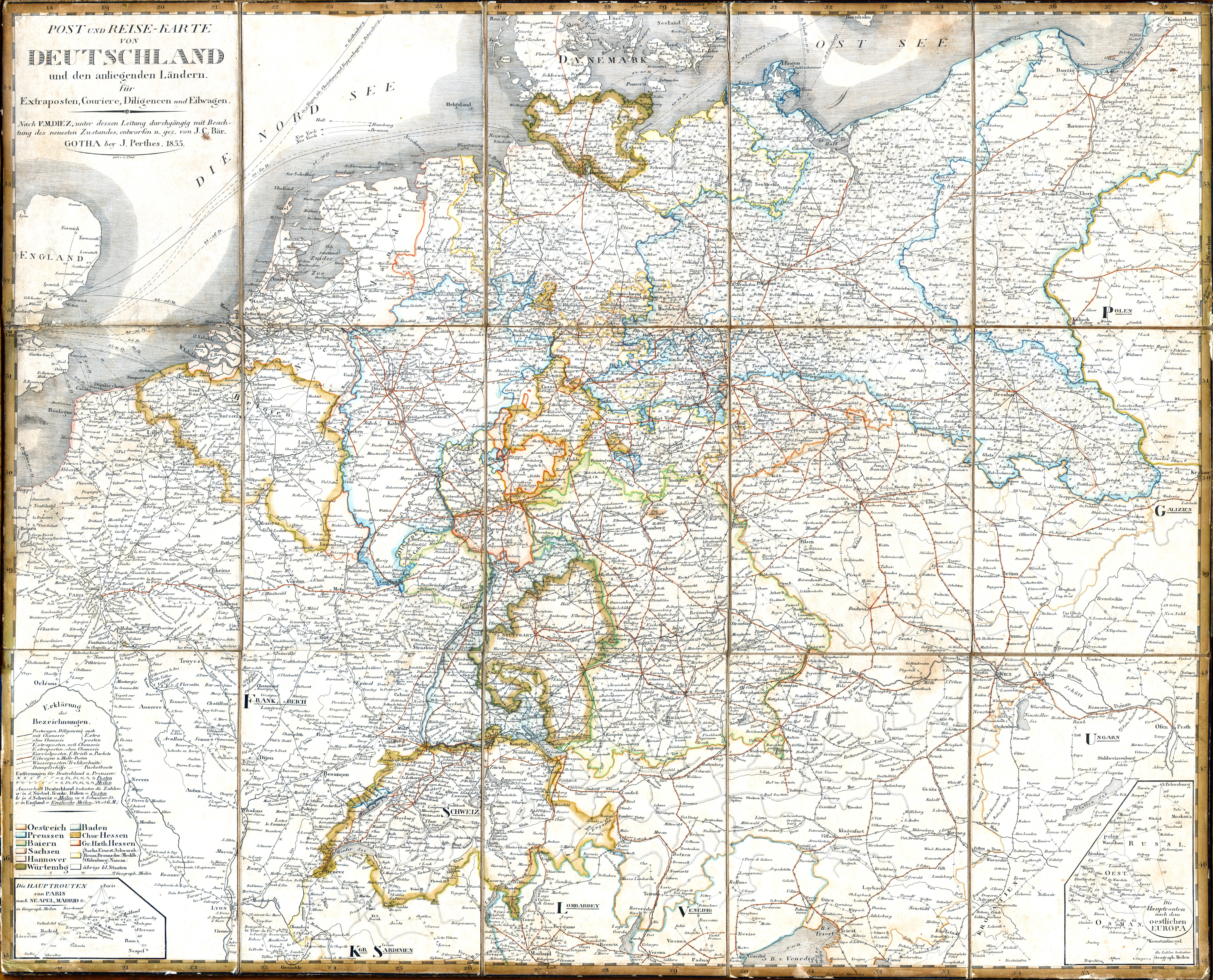 Diez, Bär: Post- und Reise-Karte von Deutschland ... (1833)