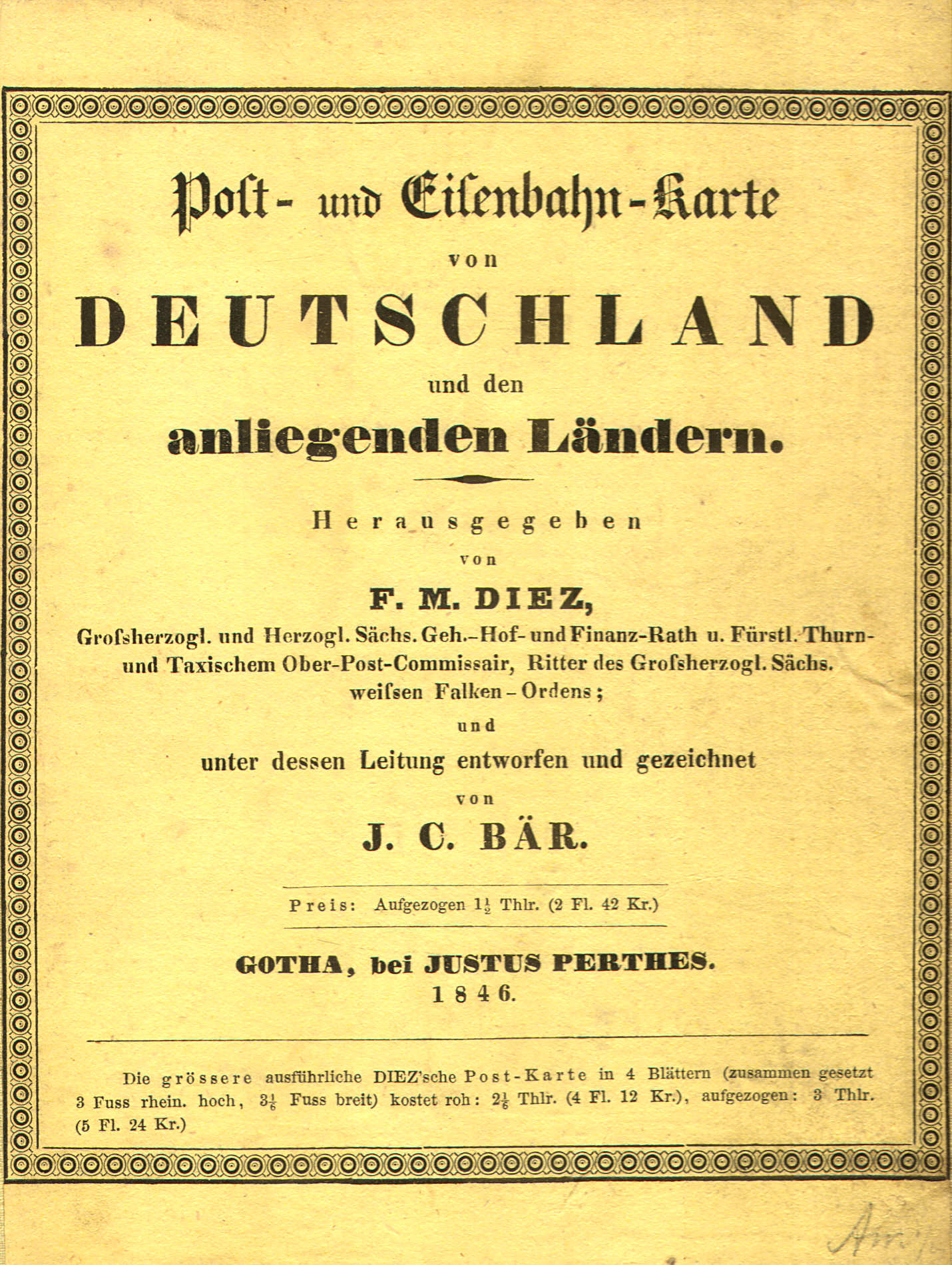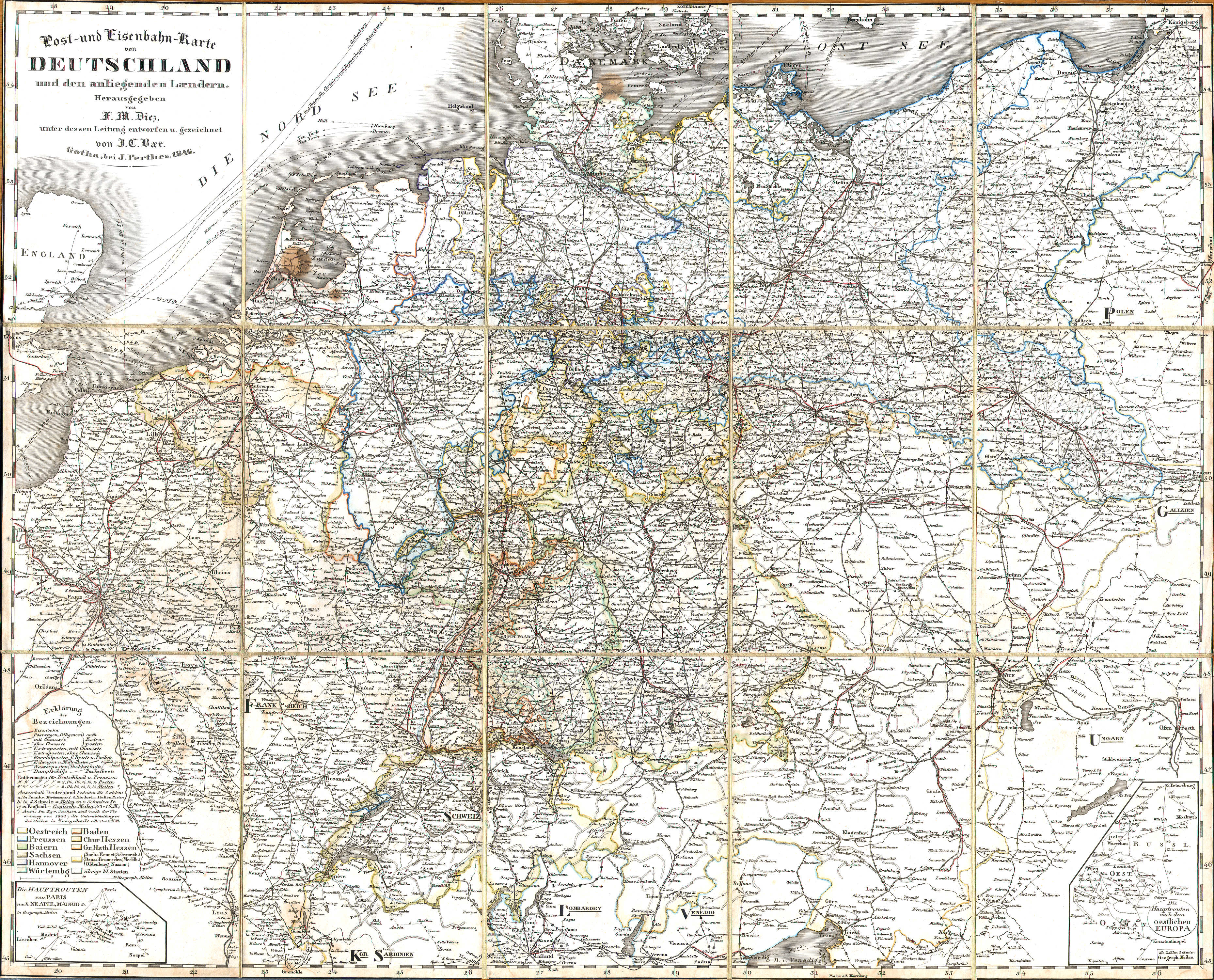 Diez, Bär: Post- und Eisenbahn-Karte von Deutschland ... (1846)