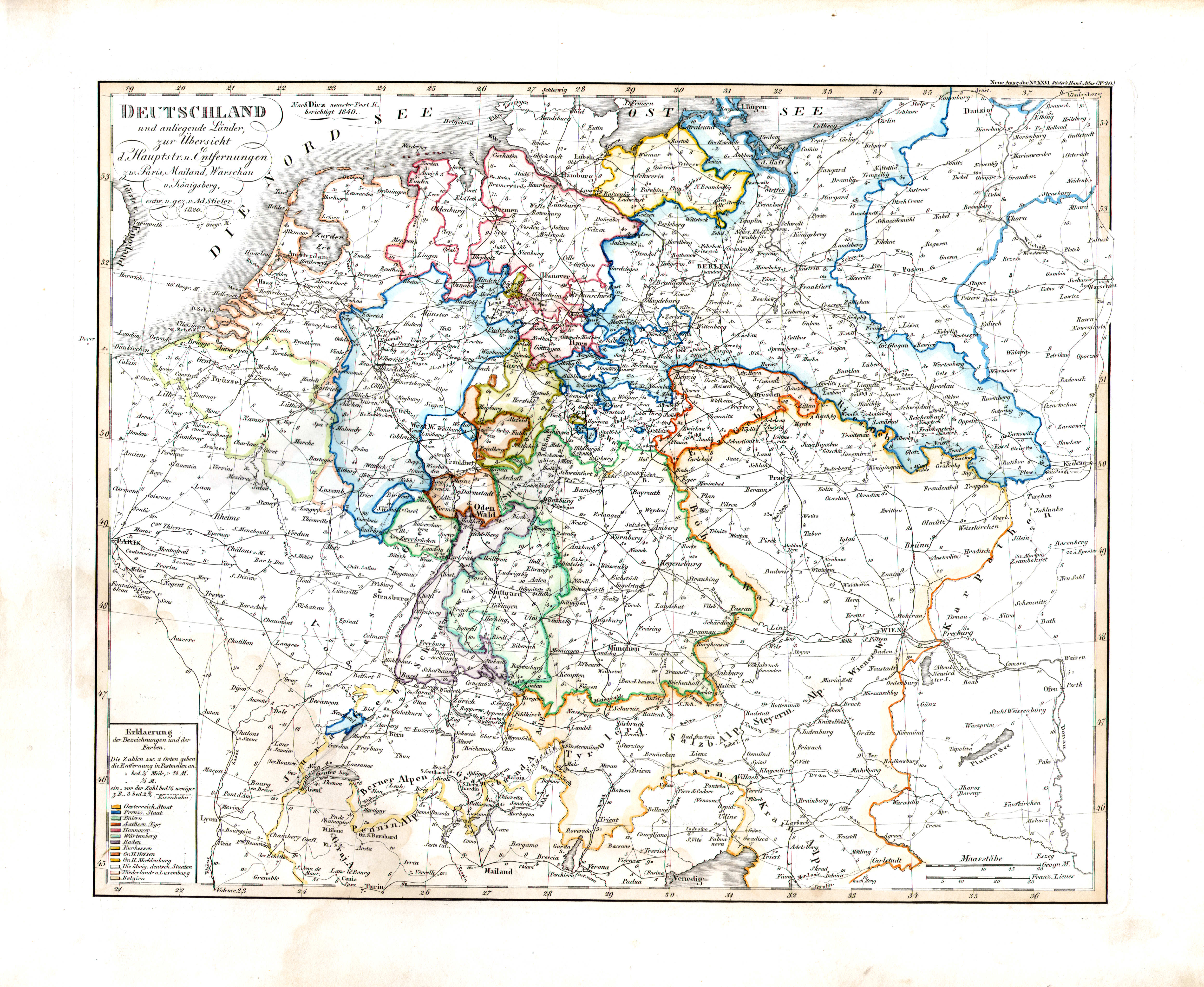 20. Deutschland und anliegende Länder, zur Übersicht der Hauptstrassen und Entfernungen