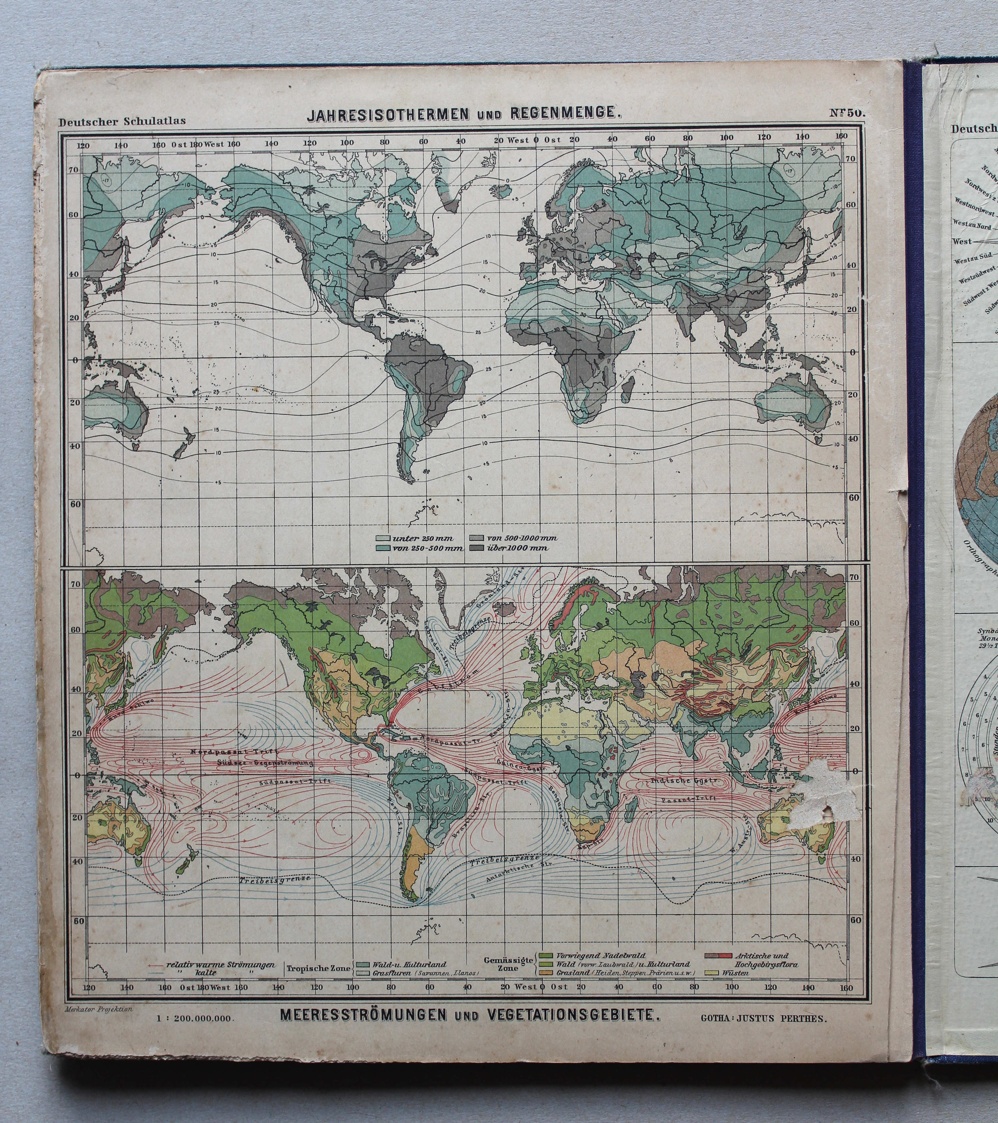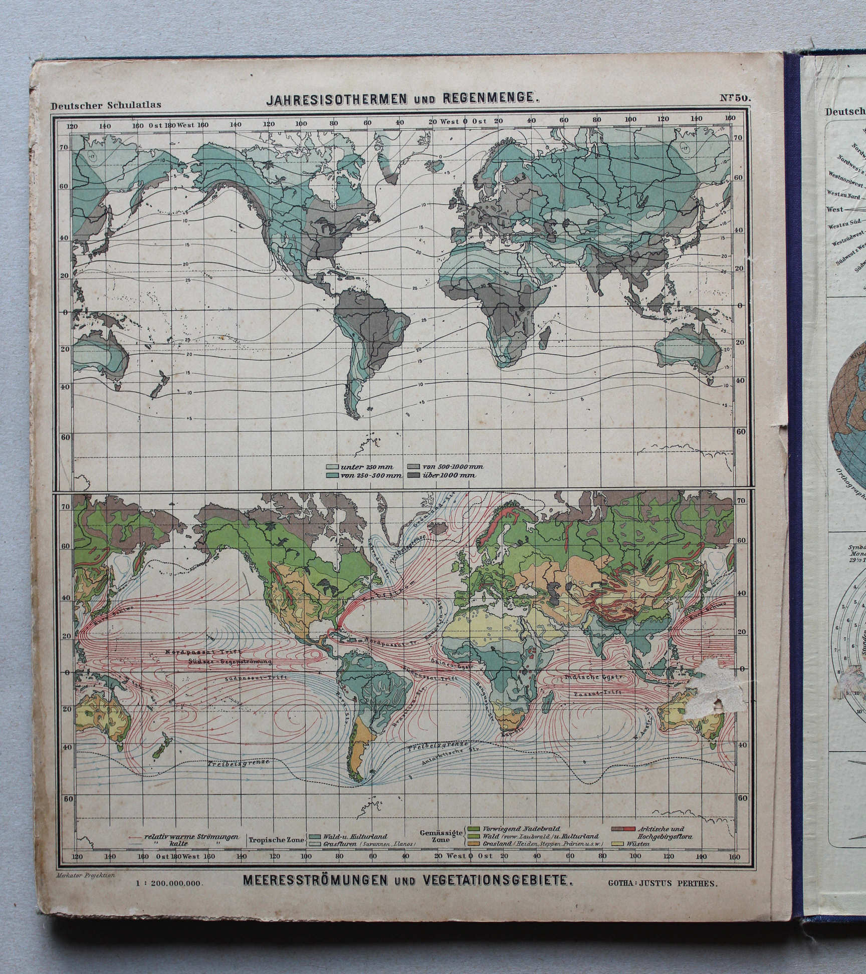 50. Jahres-Isothermen und Regenmenge. Meeresströmungen und Vegetationsgebiete