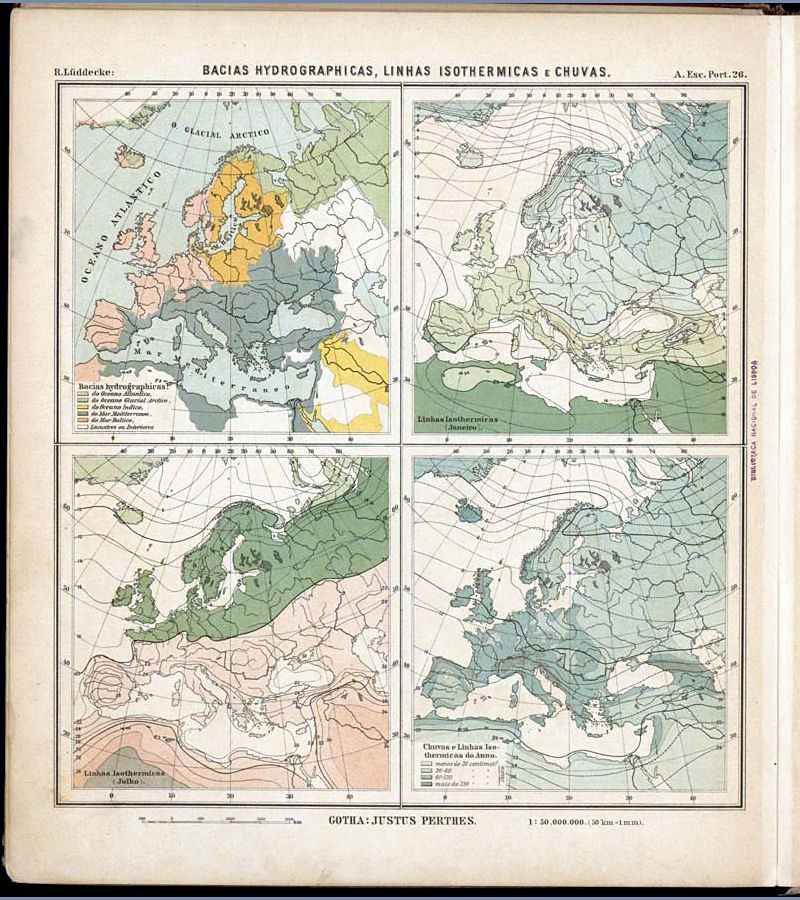 26. Europa: Bacias hydrographicas, Linhas isothermicas e Chuvas