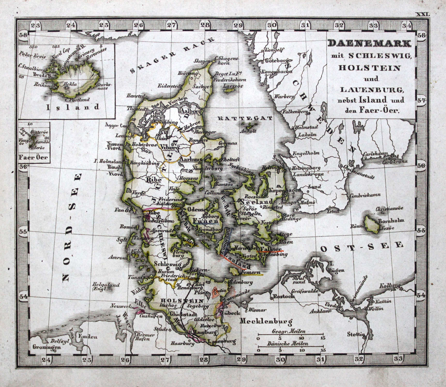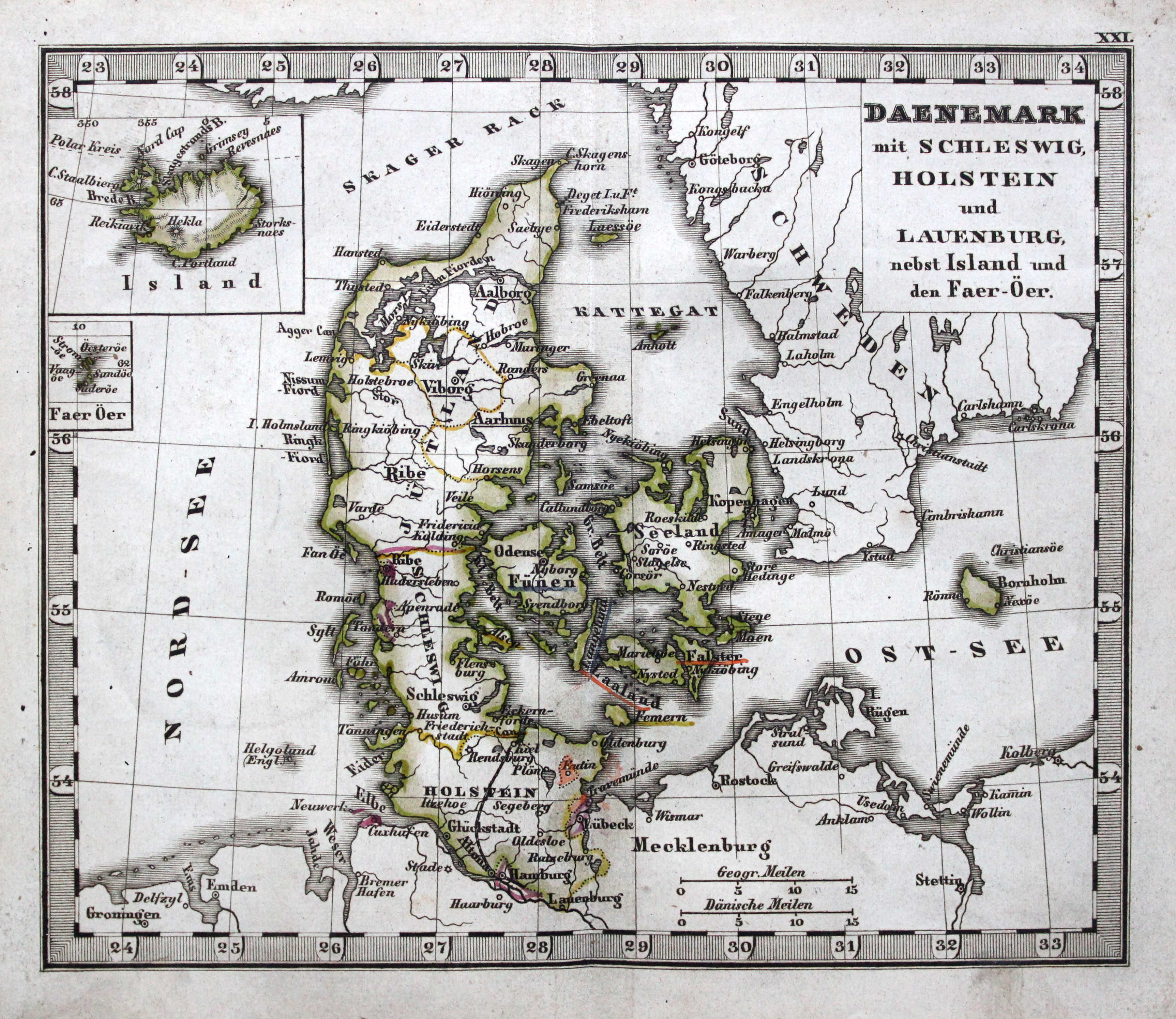 21. Daenemark mit Schleswig, Holstein und Lauenburg nebst Island und den Faer-Öer