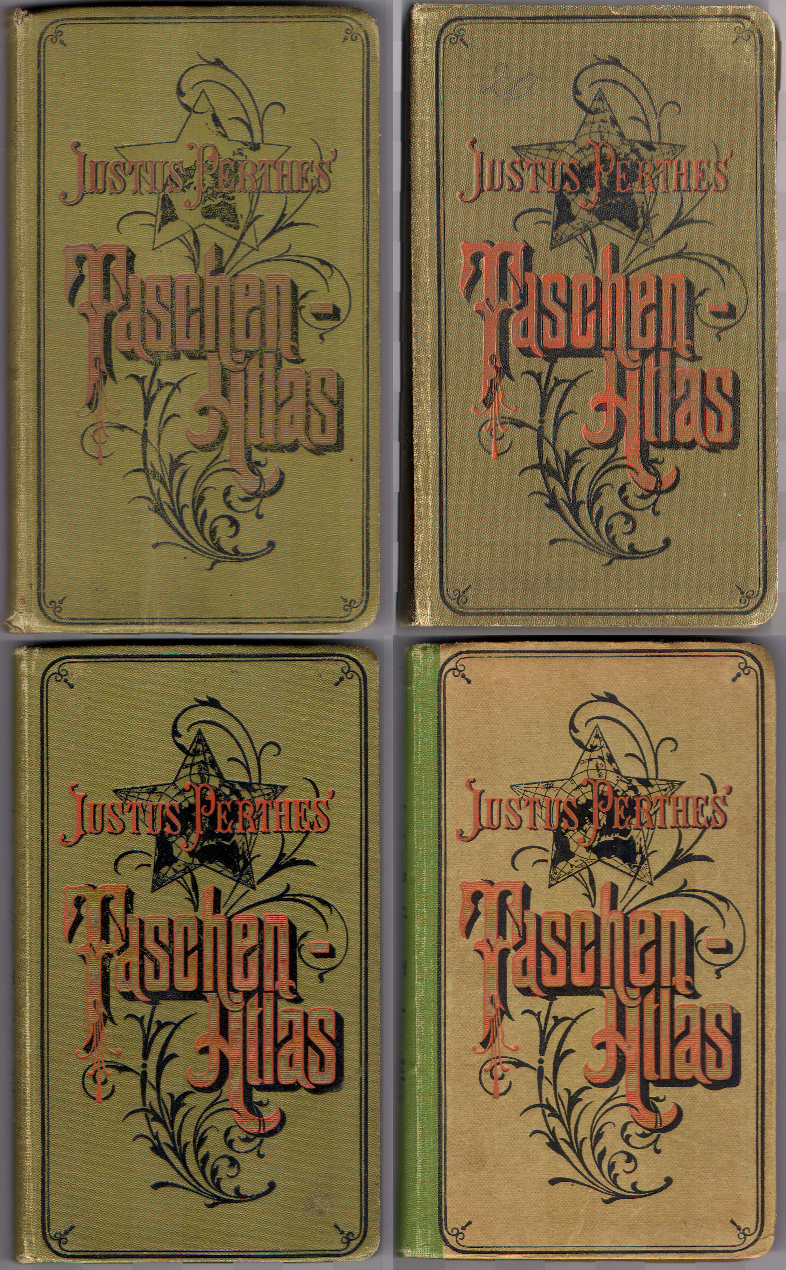 cover is the title "Justus Perthes' Taschen-Atlas" in ornamental