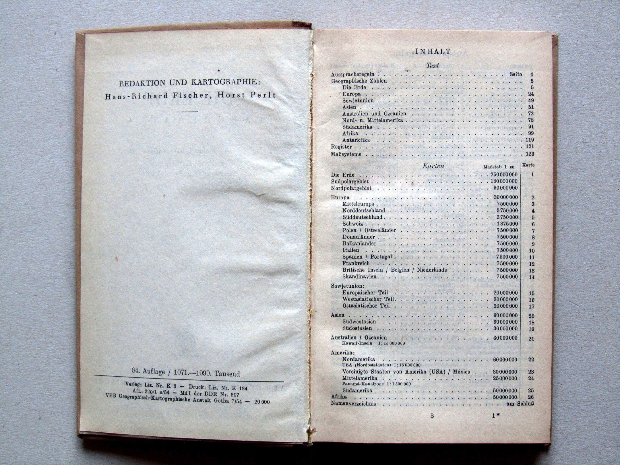 Die Erde Taschenatlas, 84th-94th editions (1954-1967)