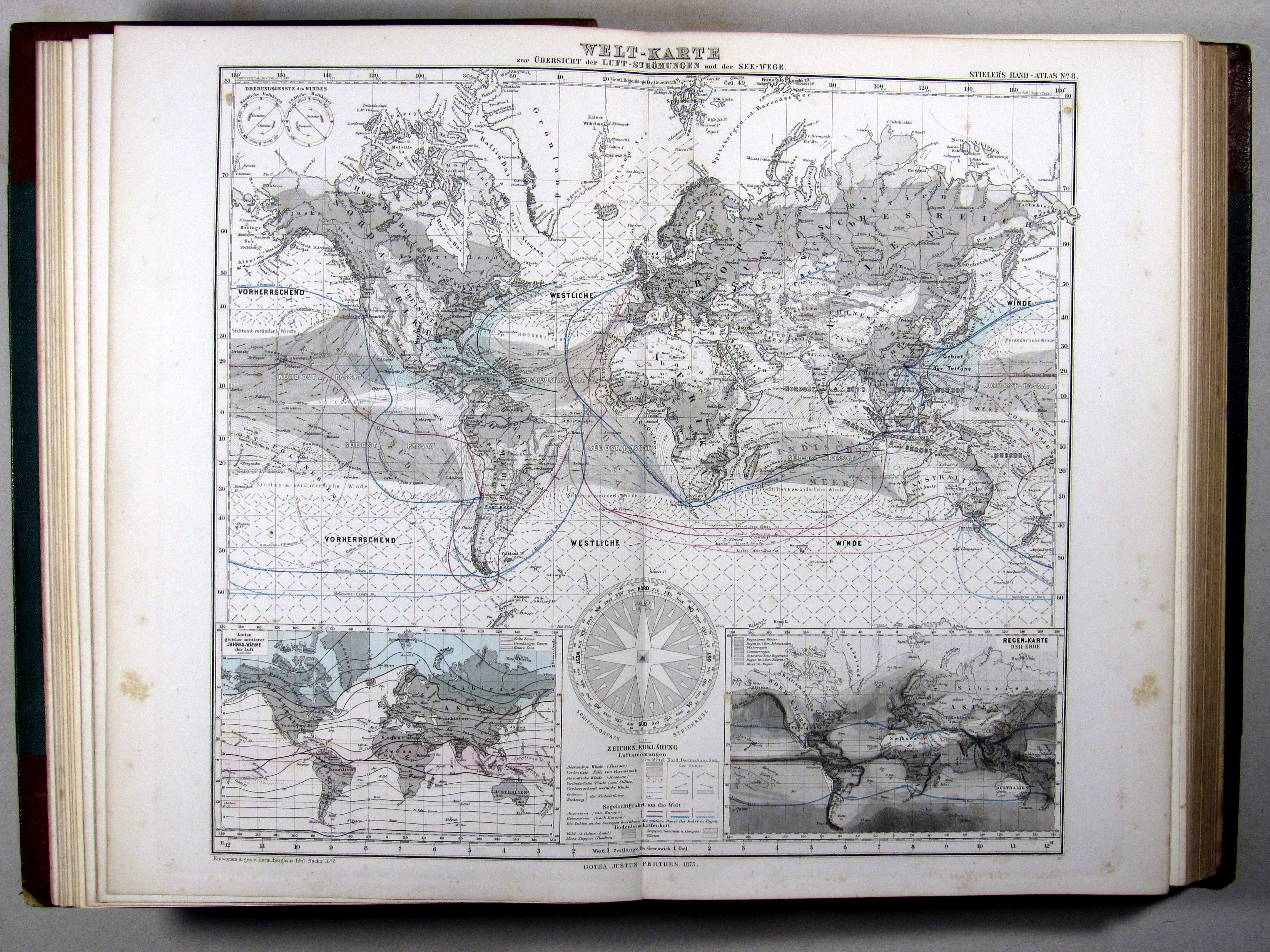 8. Welt-Karte zur Übersicht der Luft-Strömungen und der See-Wege