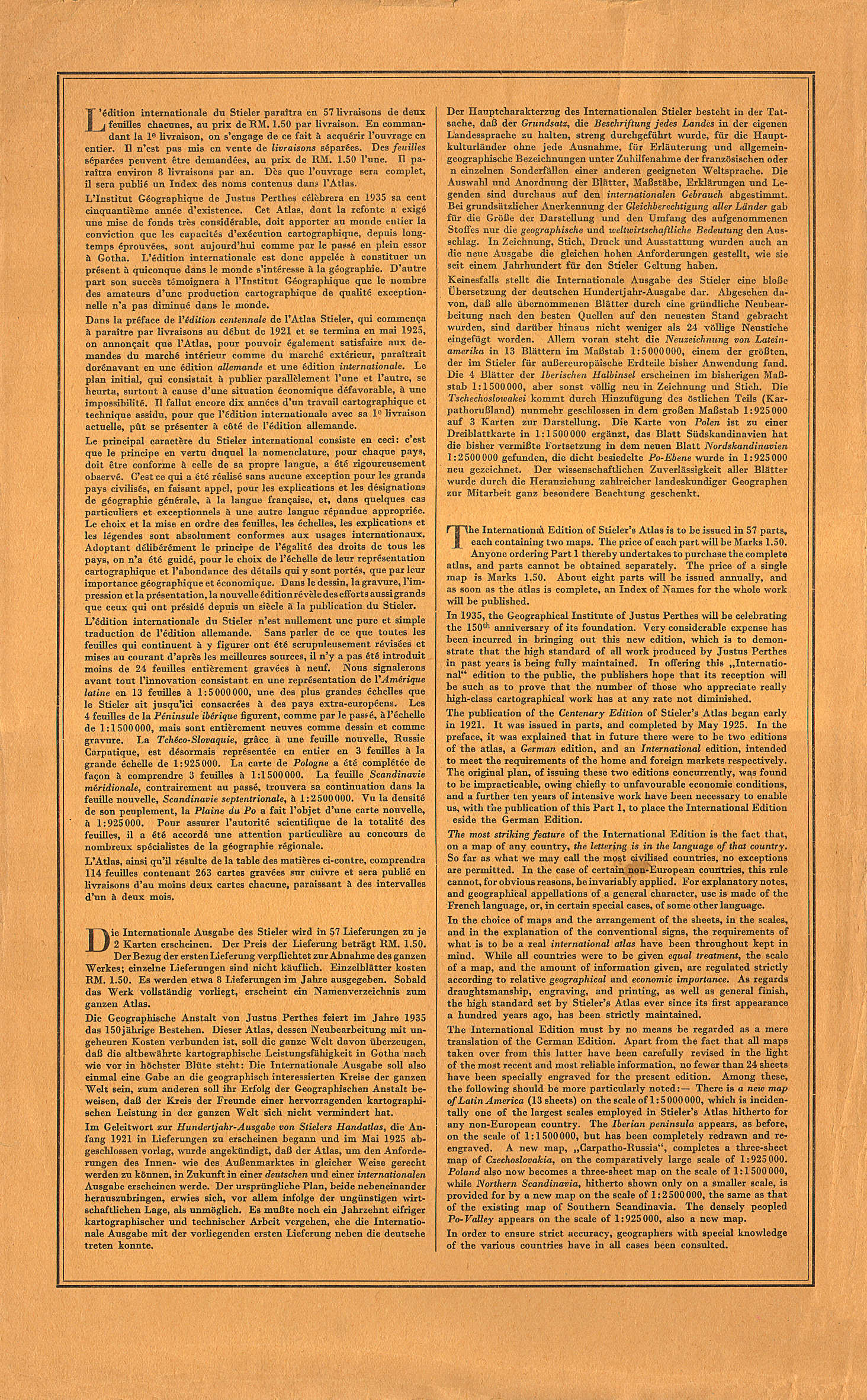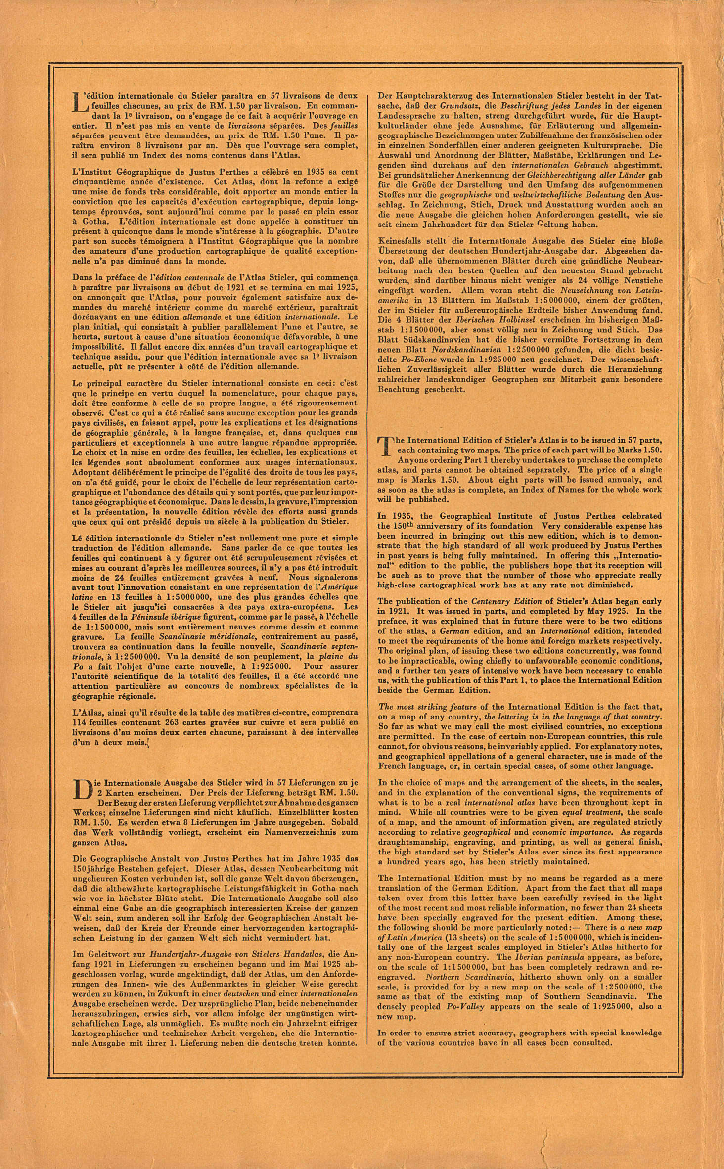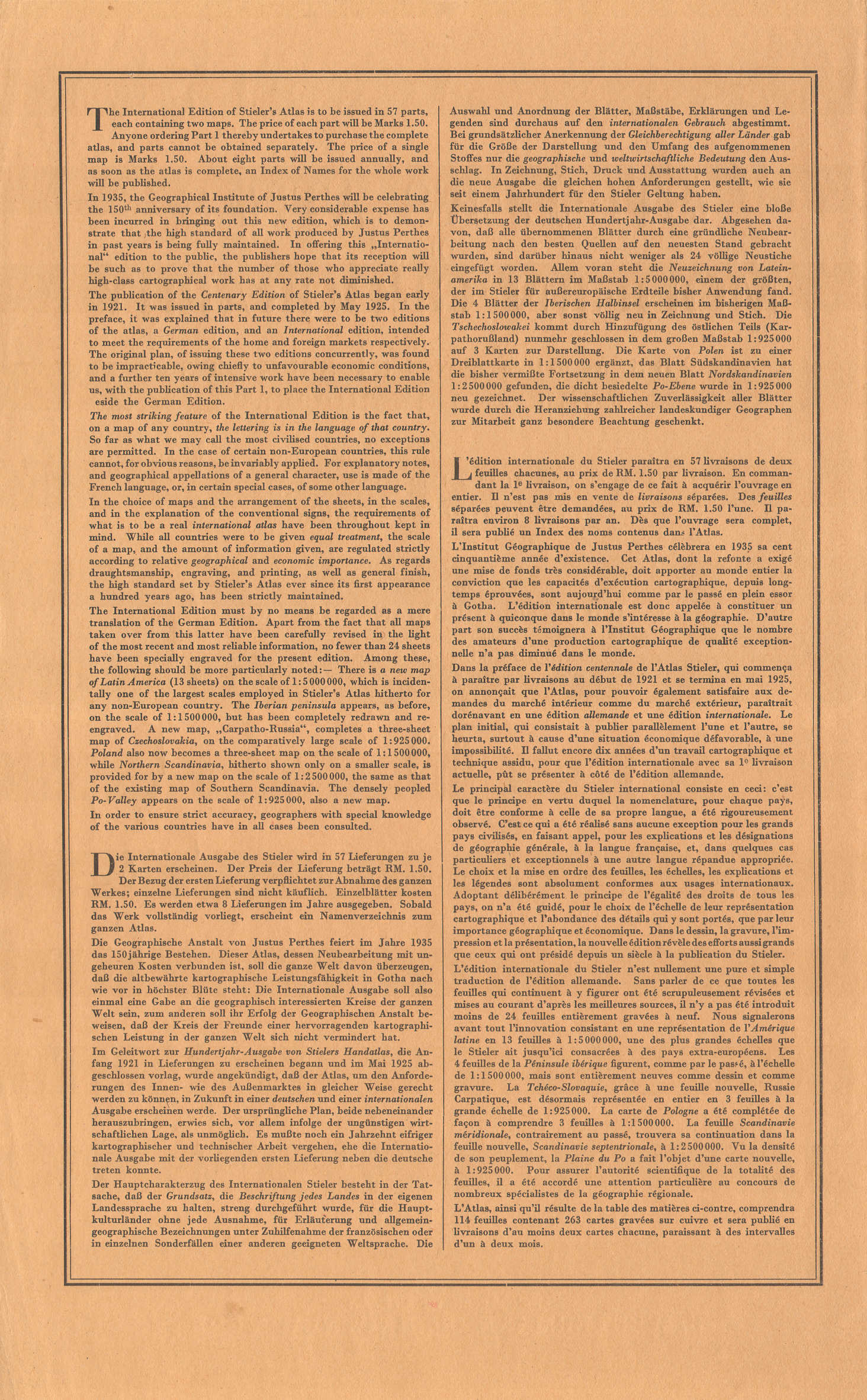 Stieler's Atlas of Modern Geography (international edition)