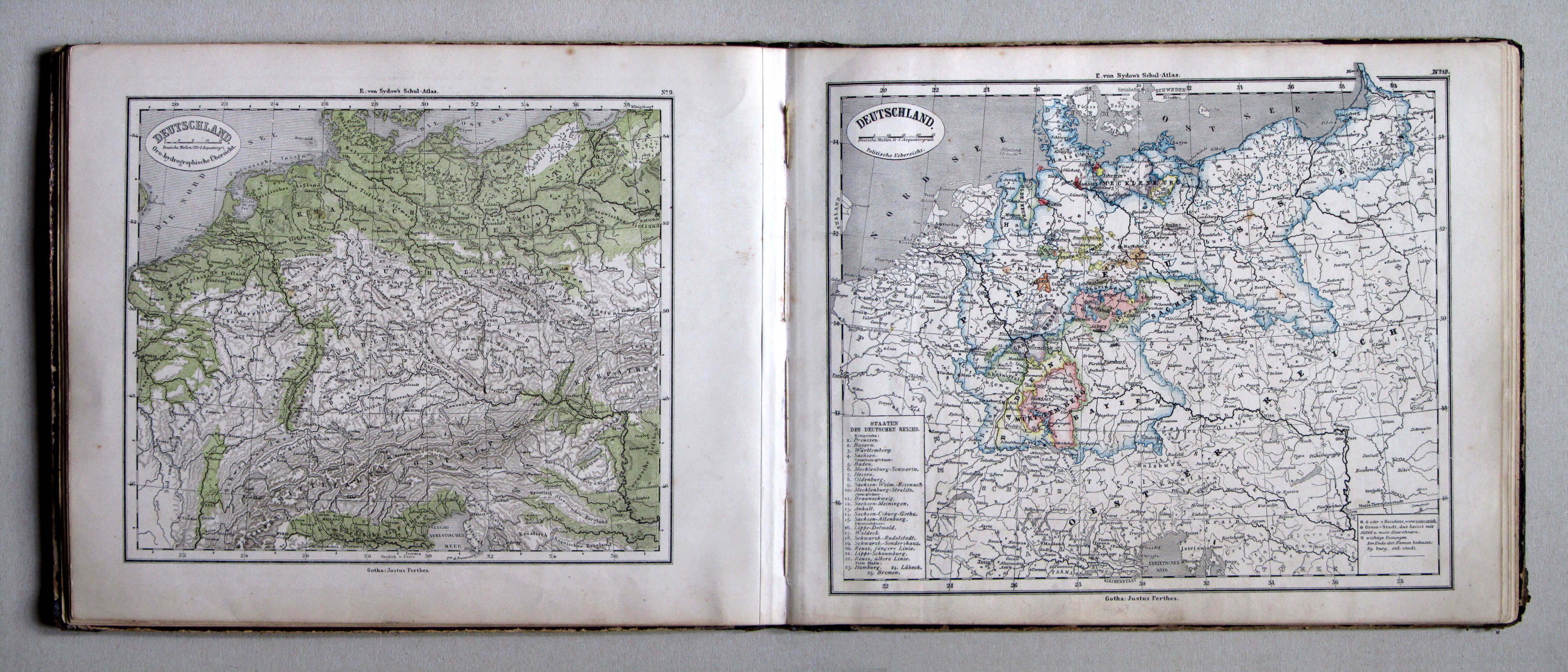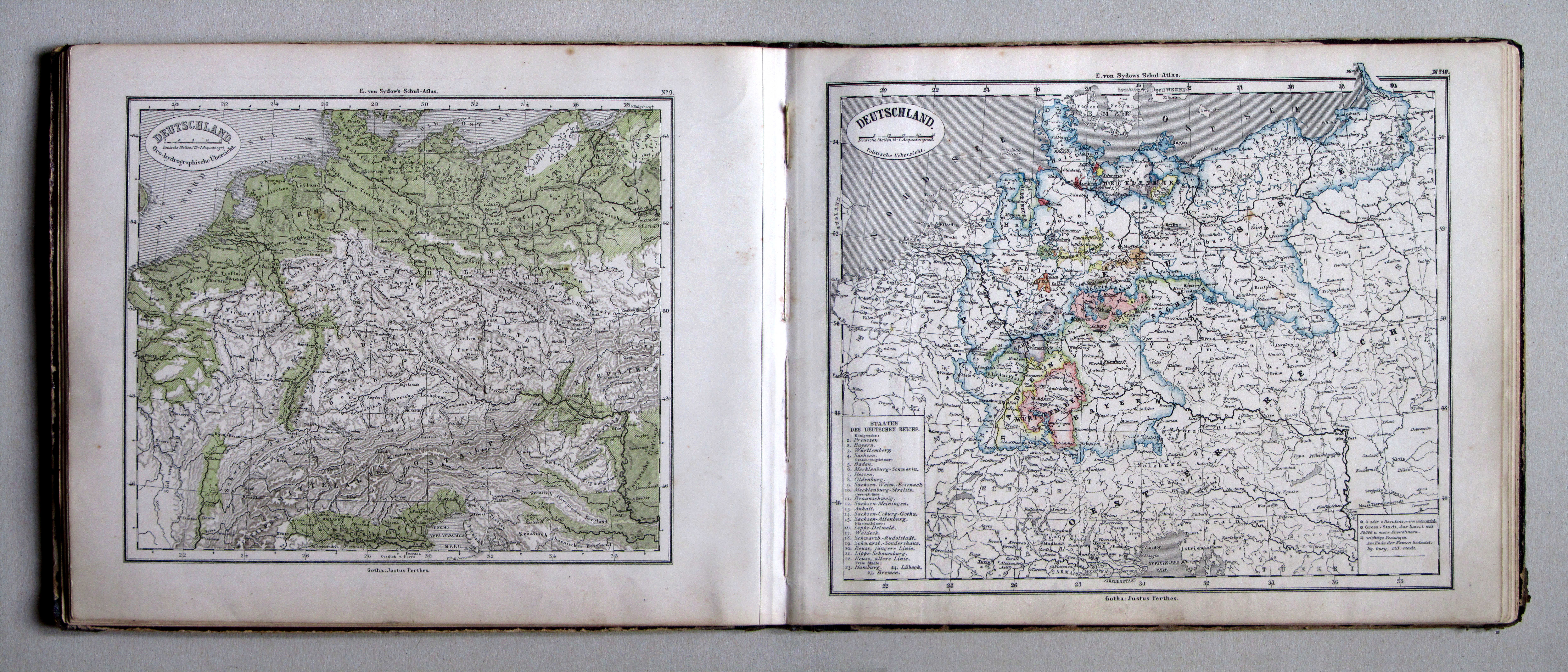 9-10. Deutschland. Oro-hydrographische Übersicht. Politische Uebersicht