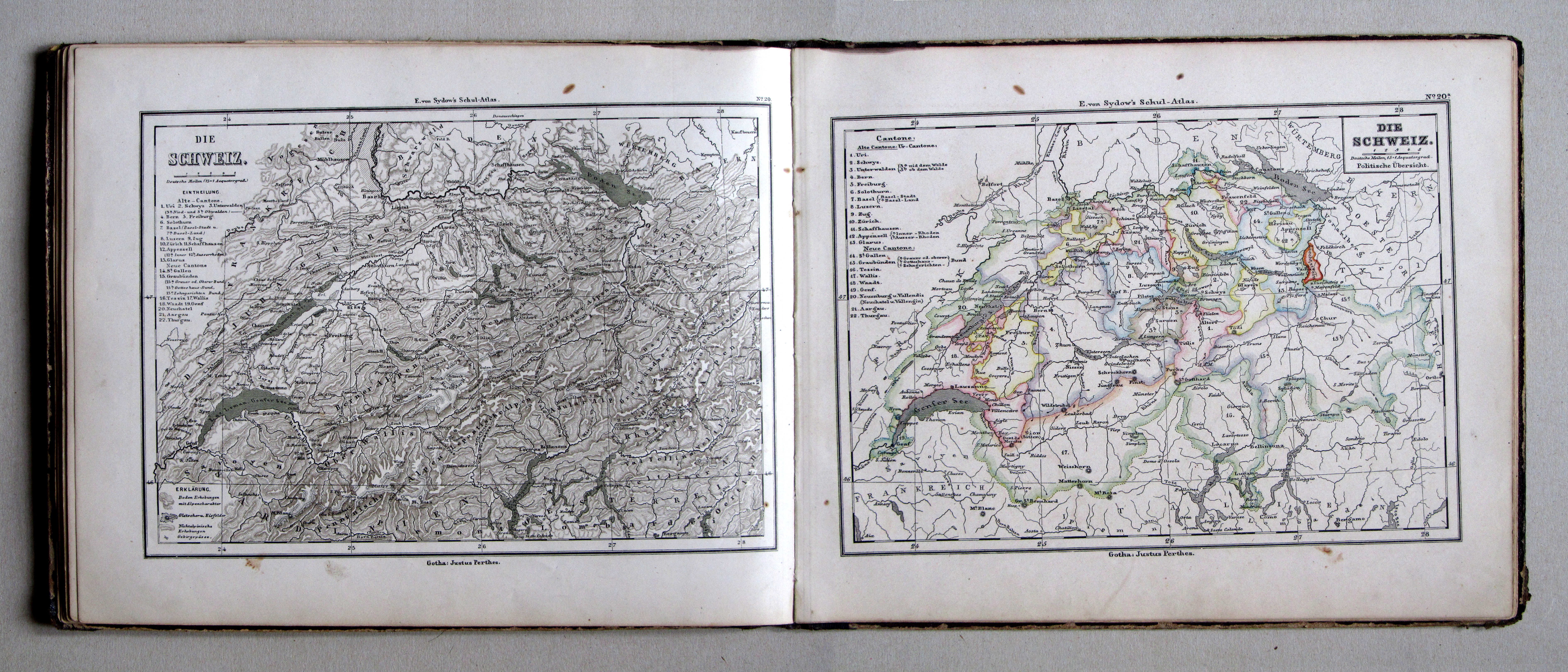 20-20a. Die Schweiz. (Oro-hydrographische Übersicht.) Politische Übersicht