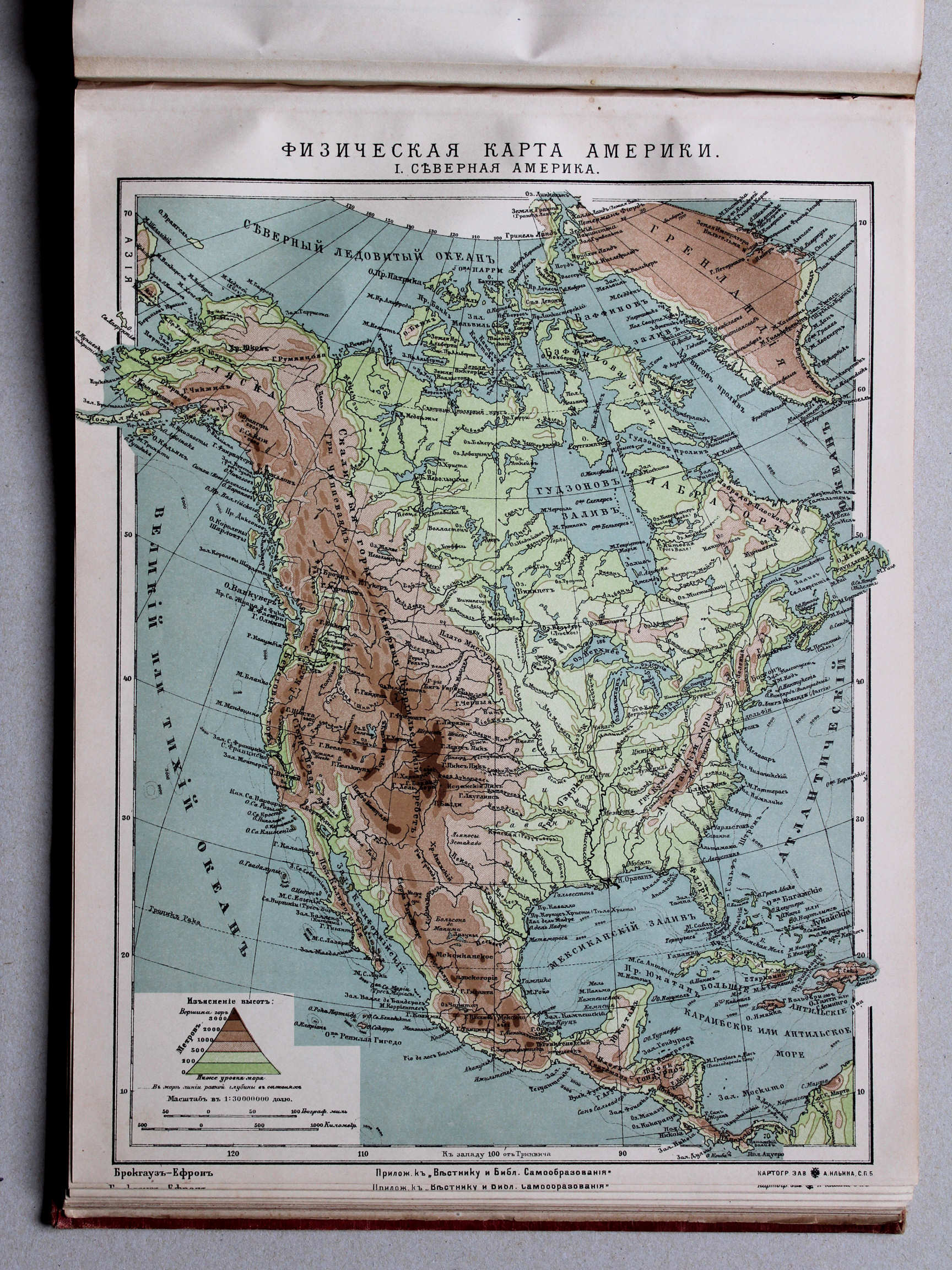 Fizičeskaja karta Ameriki. I. Sěvernaja Amerika