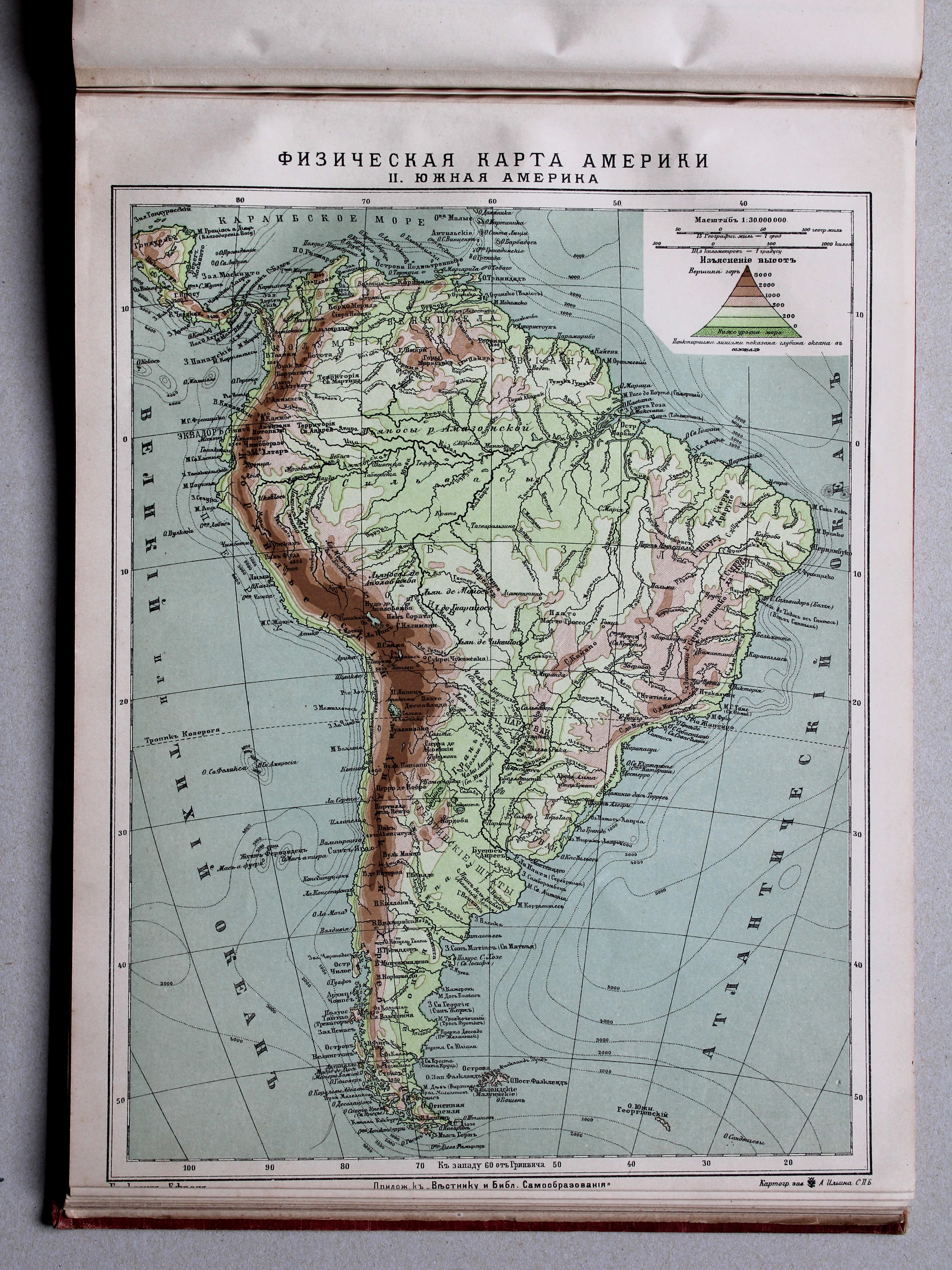 Fizičeskaja karta Ameriki. II. Južnaja Amerika