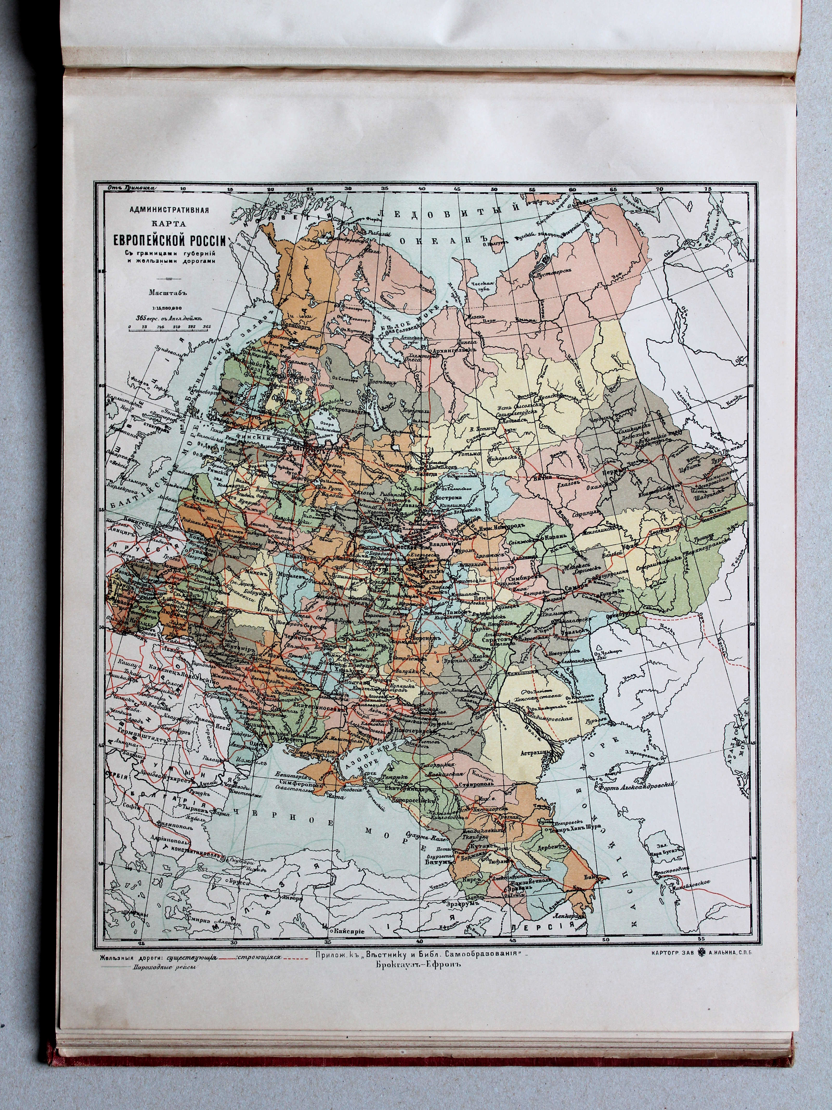 Administrativnaja karta Evropejskoj Rossii. S granicami gubernii i želěznymi dorogami