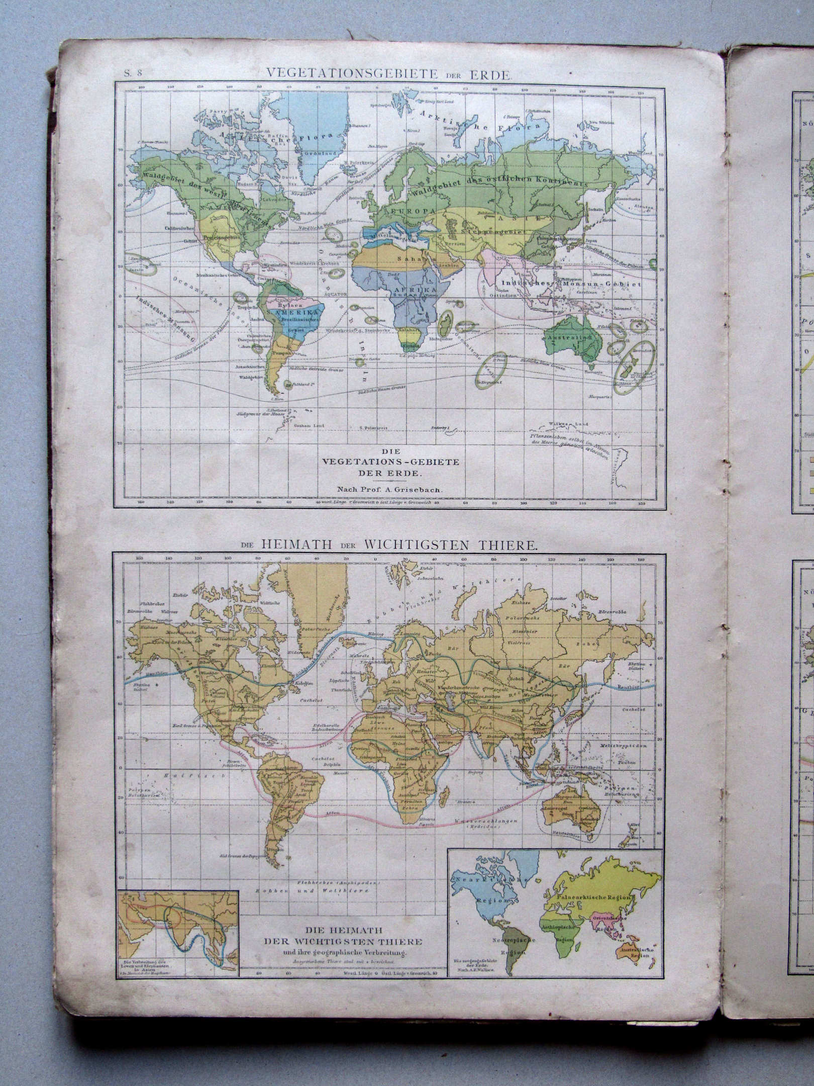 S.8. Vegetationsgebiete der Erde. Die Heimath der wichtigsten Thiere