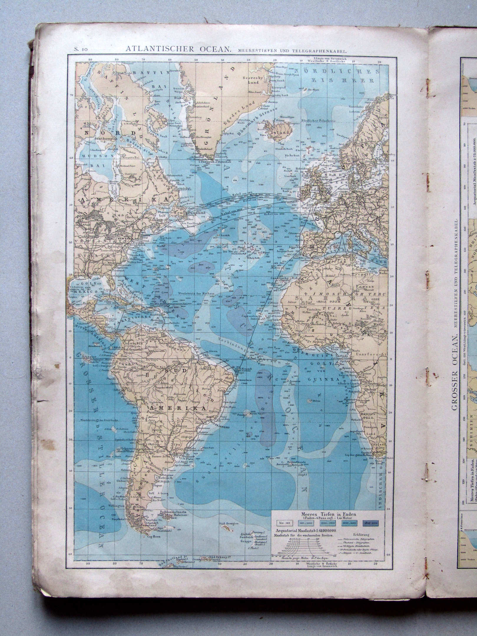 S.10. Atlantischer Ocean. Meerestiefen und Telegraphenkabel