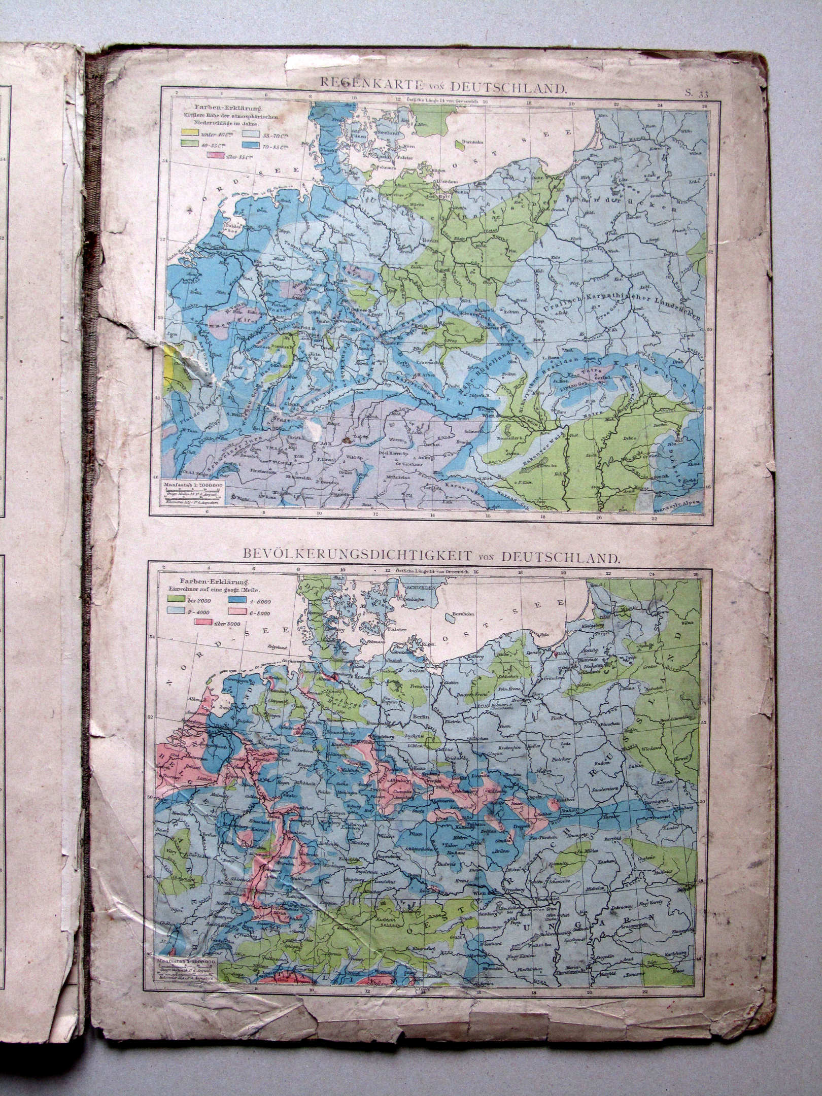S.33. Regenkarte von Deutschland. Bevölkerungsdichtigkeit von Deutschland