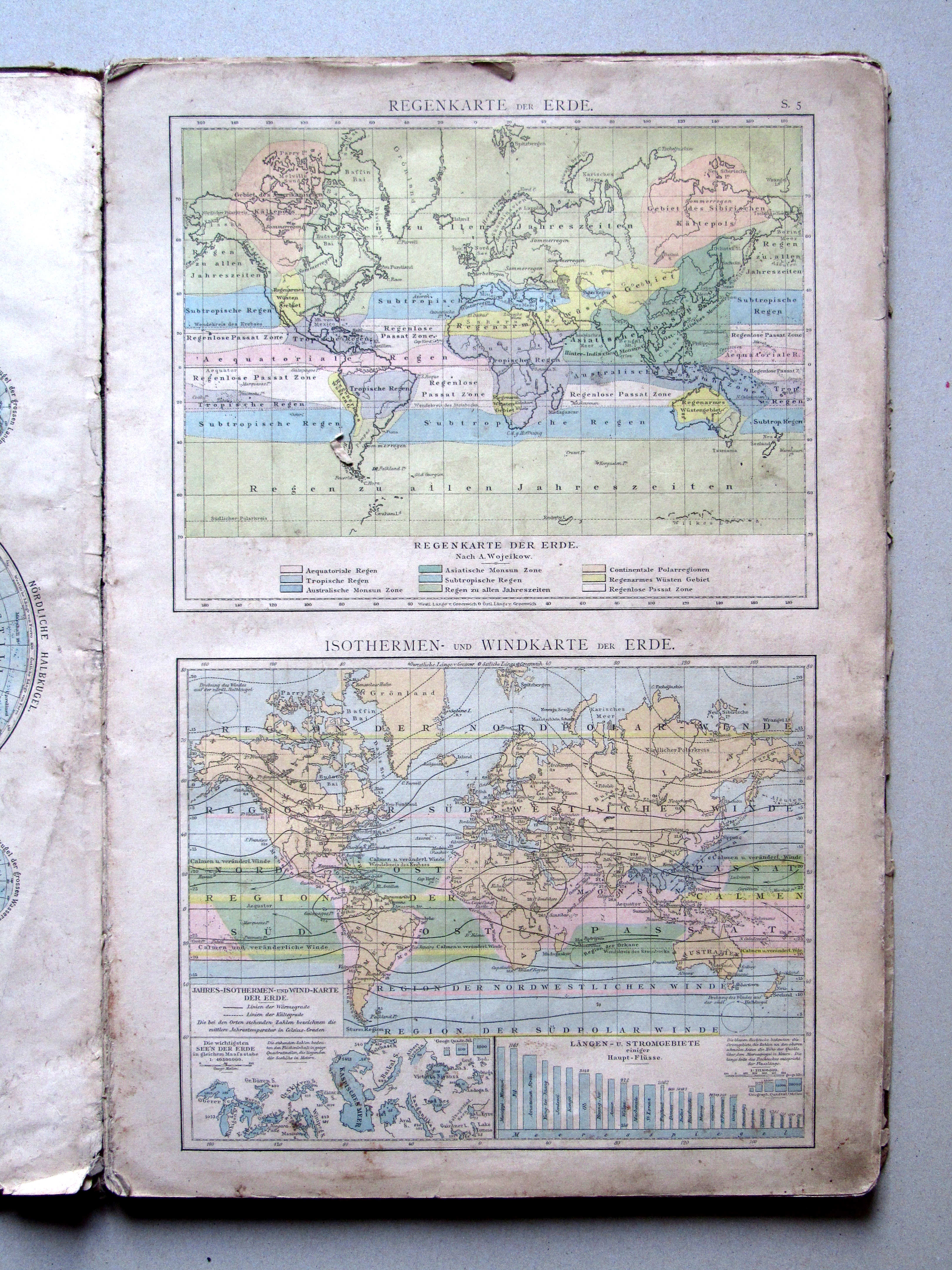S.5. Regenkarte der Erde. Isothermen- und Windkarte der Erde