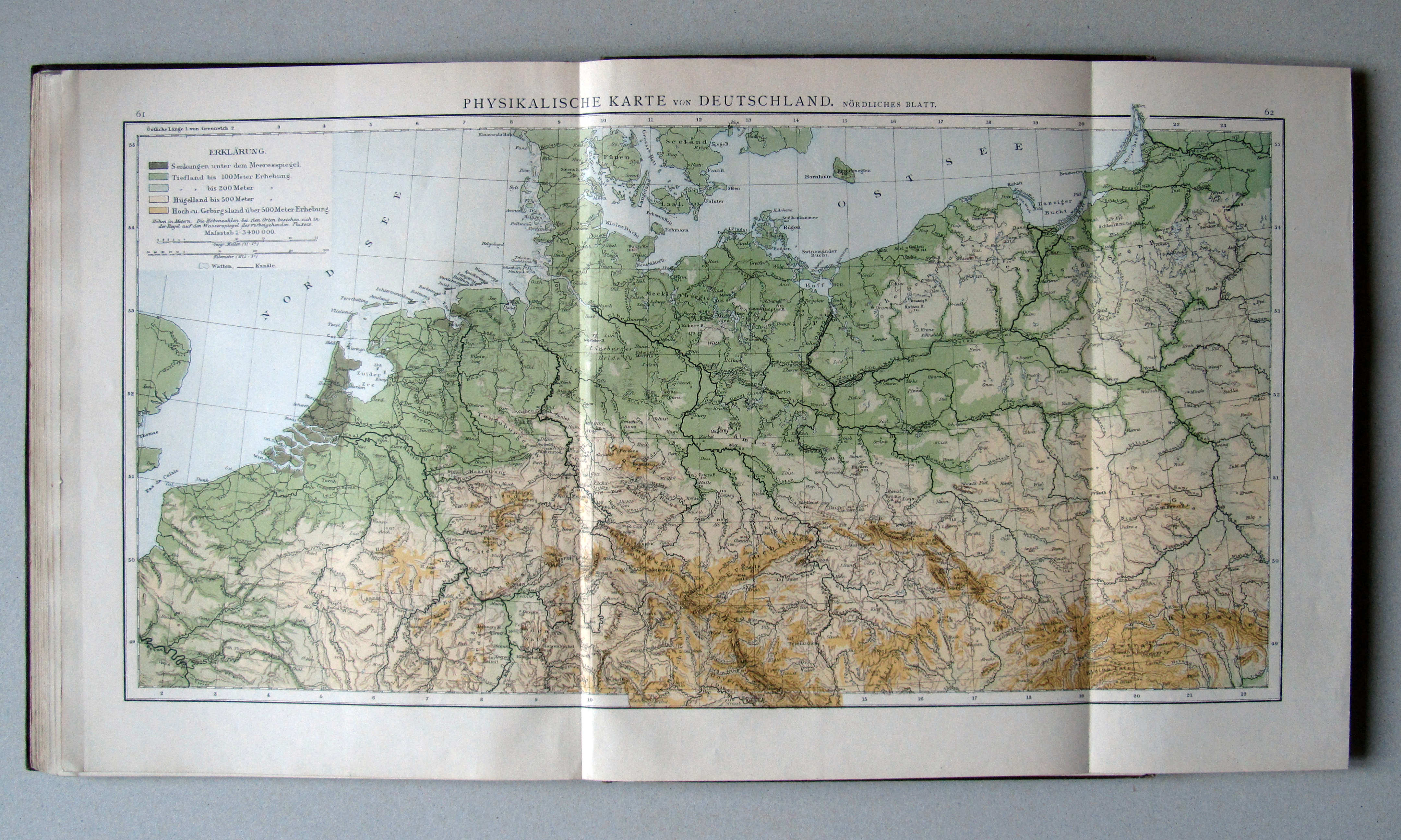 61.62. Physikalische Karte von Deutschland. Nördliches Blatt