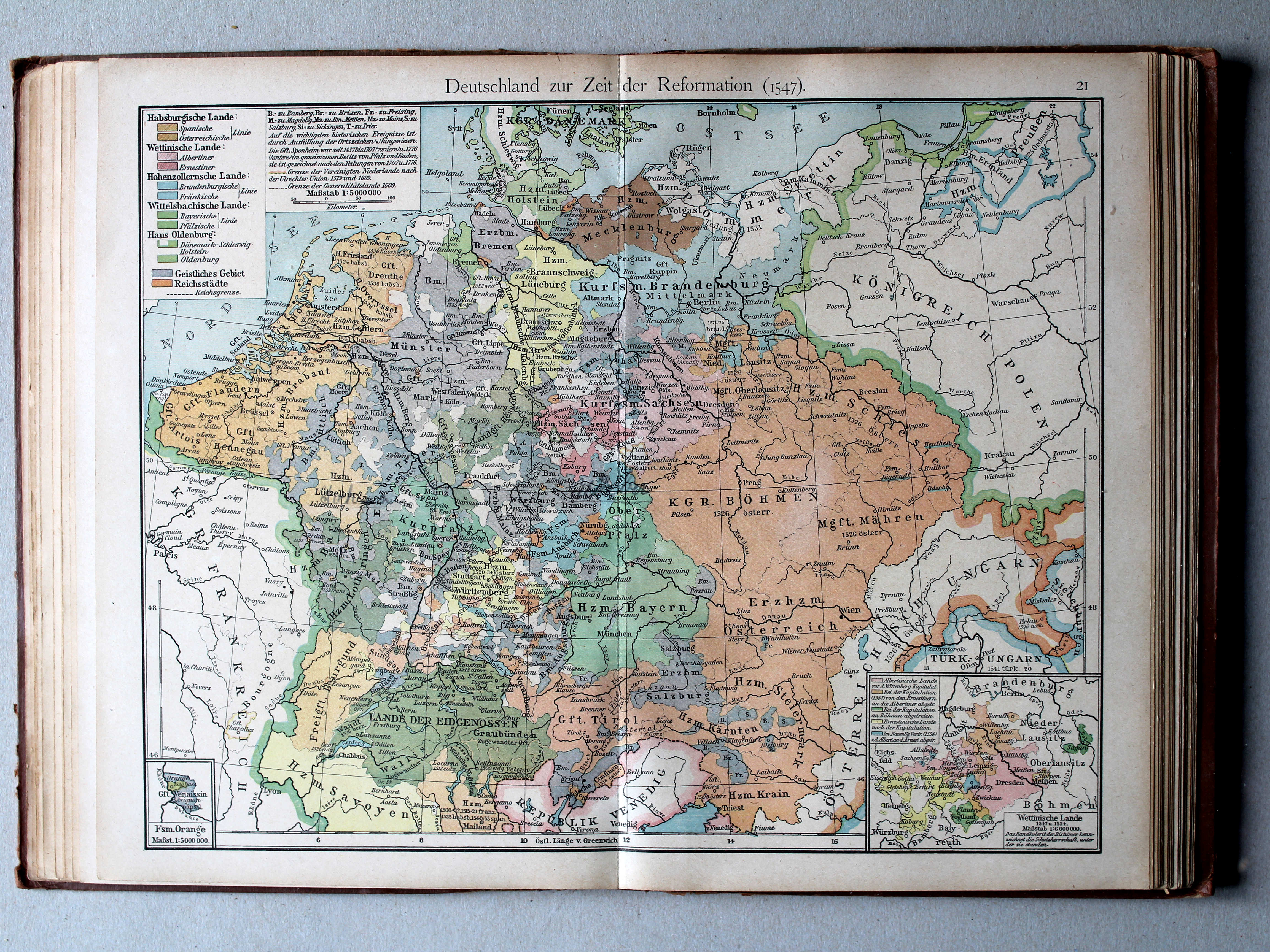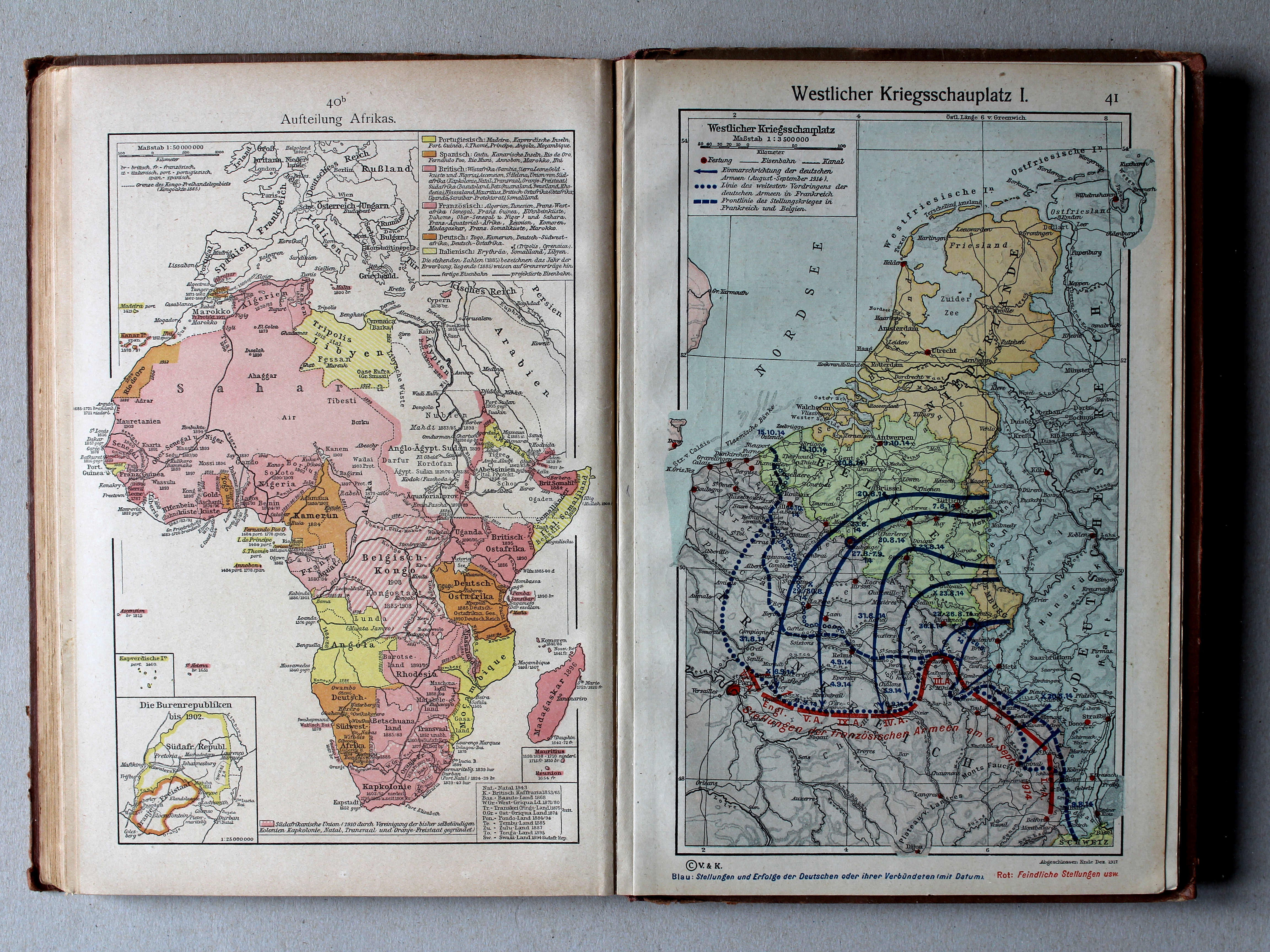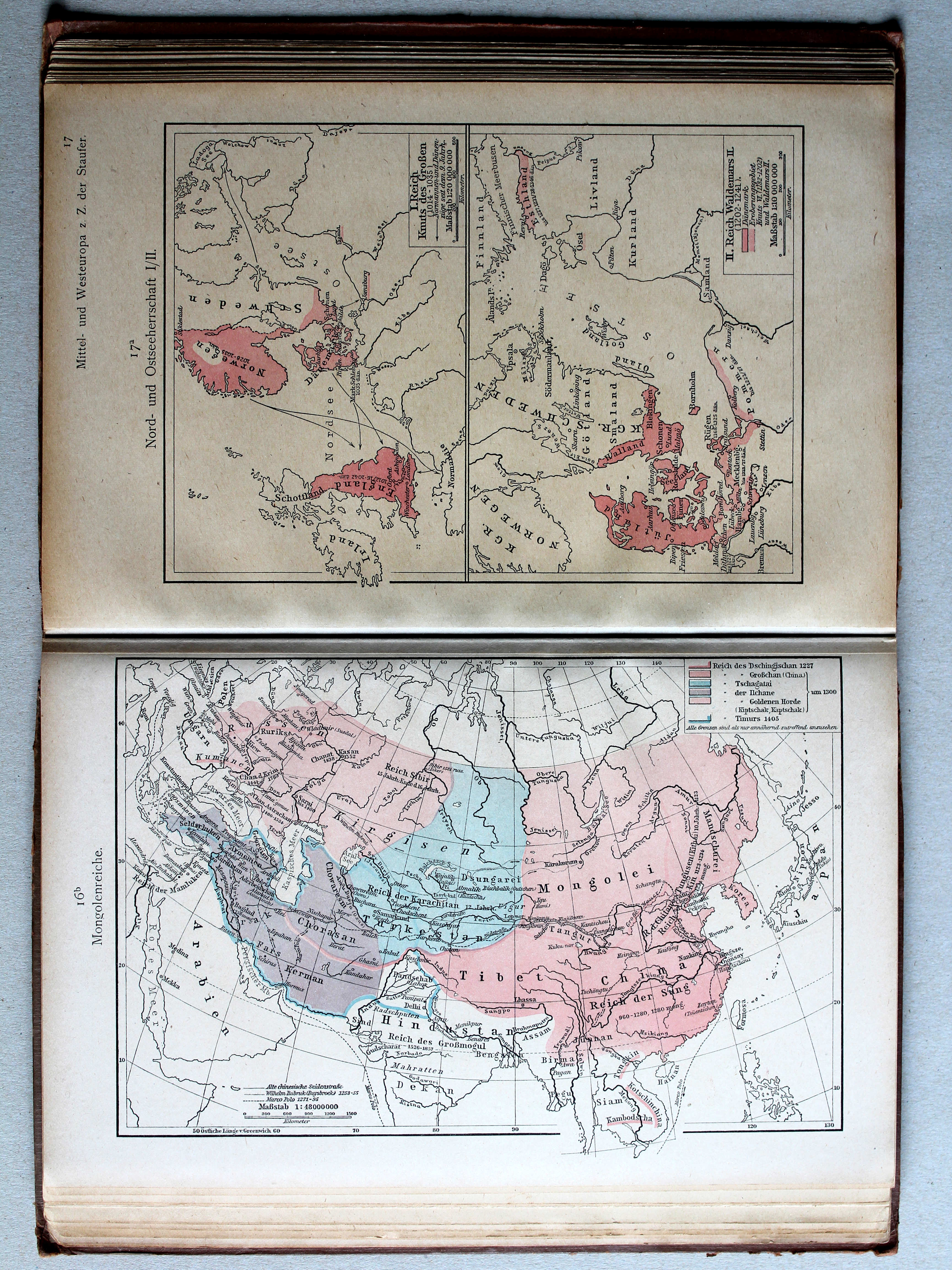 Atlas en Putzgers Historischer Schul-Atlas ter vergelijking naast elkaar.