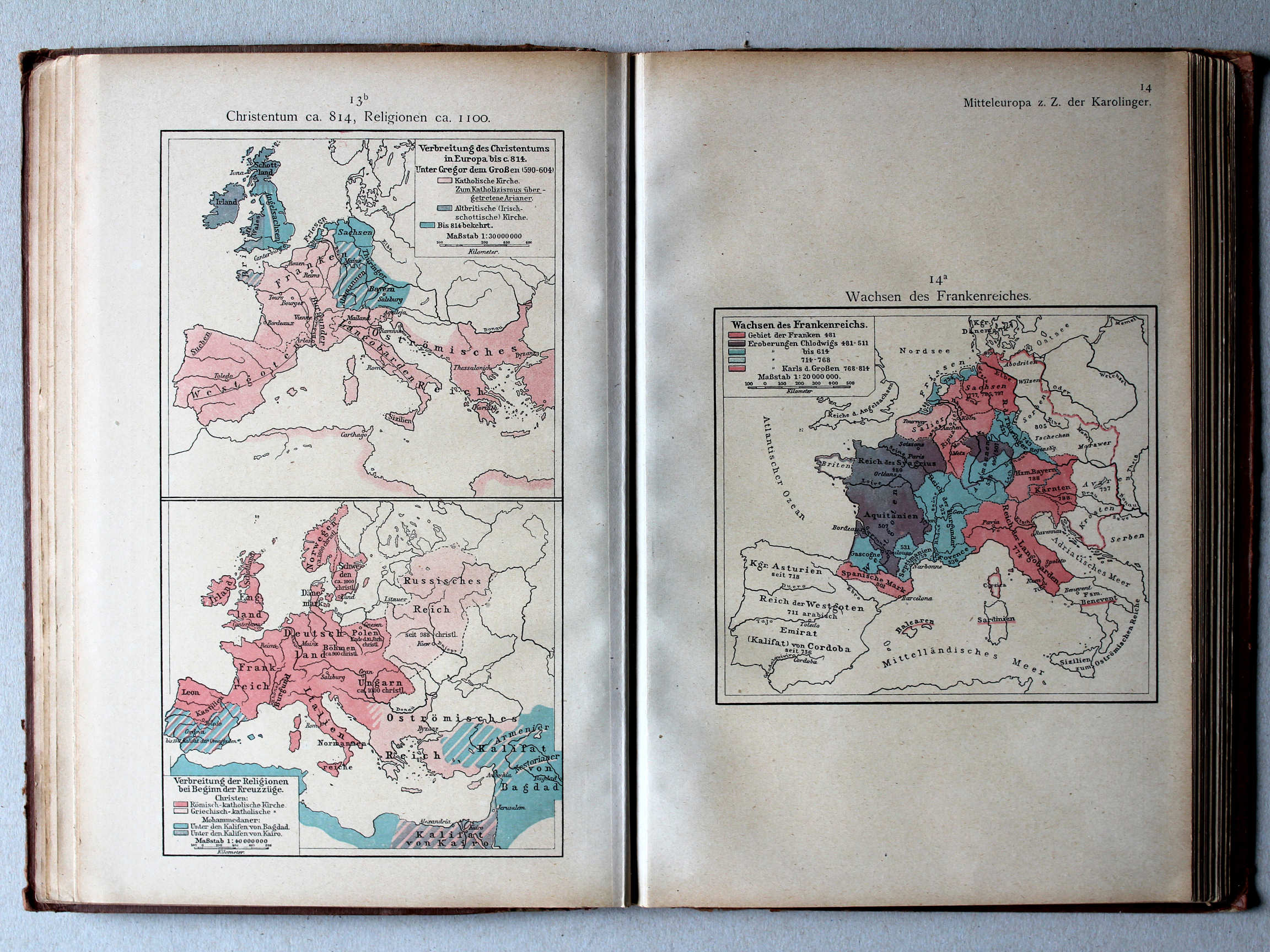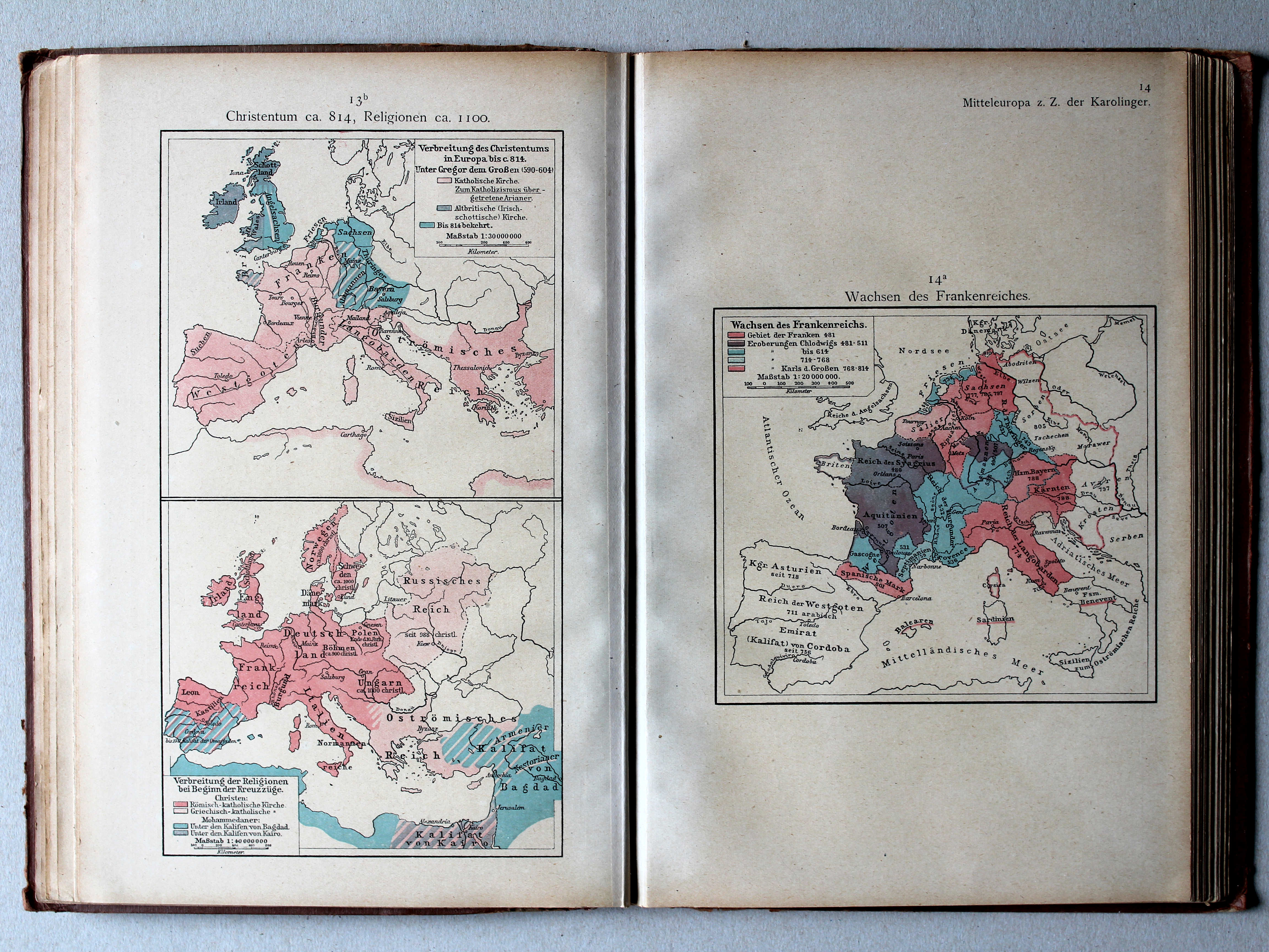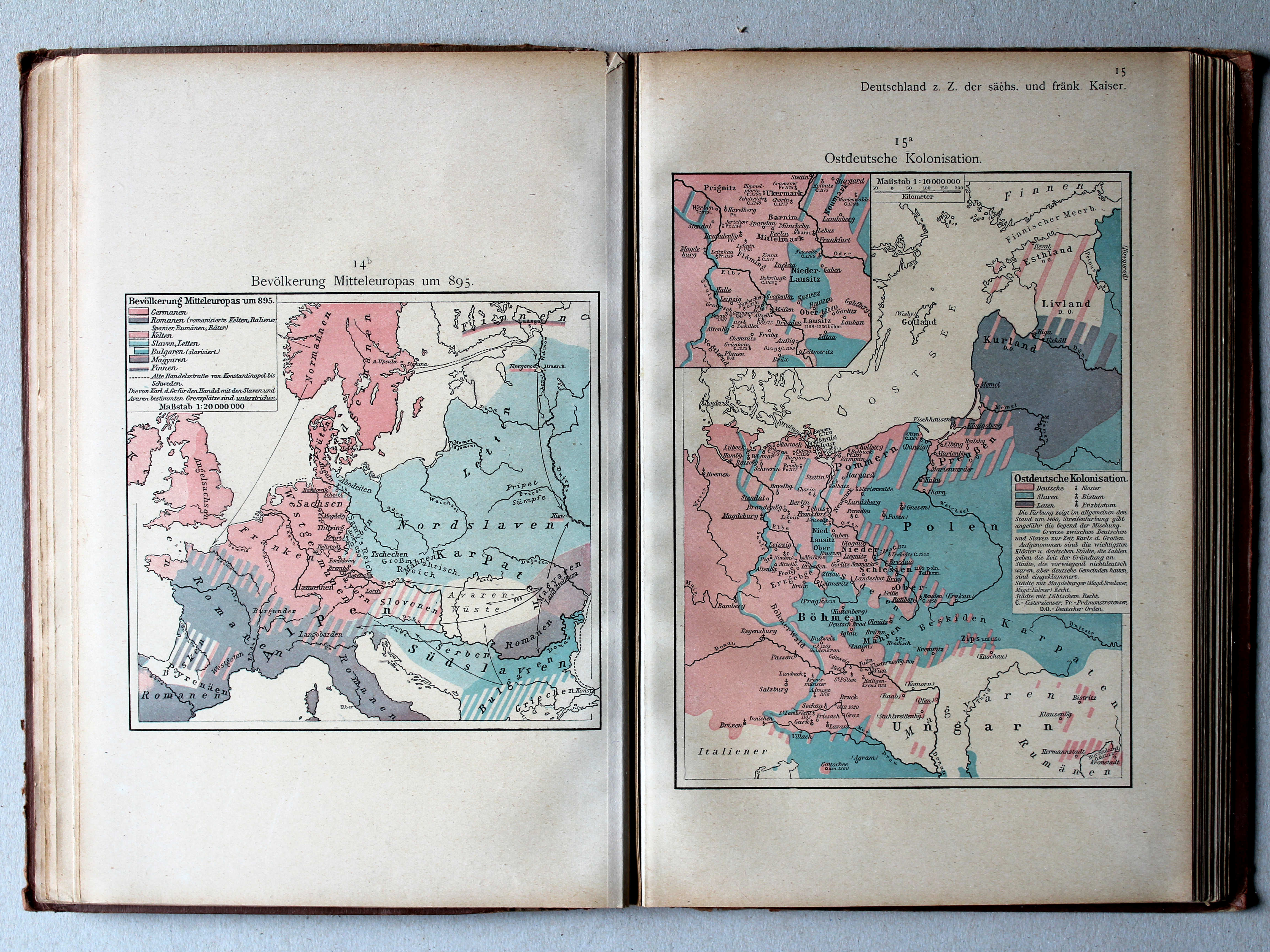 Atlas en Putzgers Historischer Schul-Atlas ter vergelijking naast elkaar.