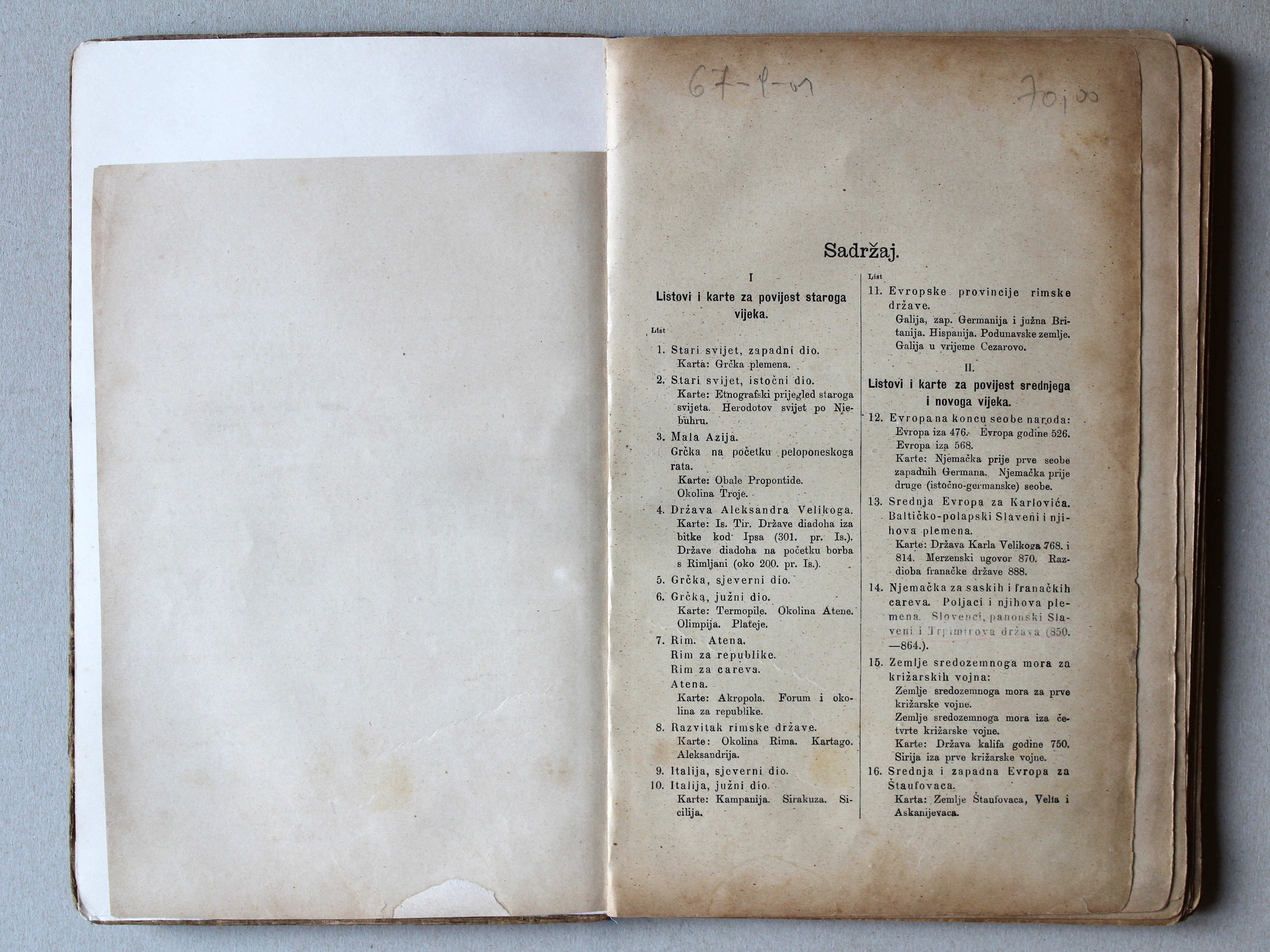 I. Listovi i karte za povijest staroga vijeka