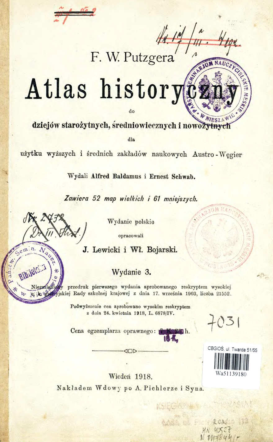 - Dit is de 3e druk van "Putzgers Historischer Schul-Atlas" voor Poolstalige