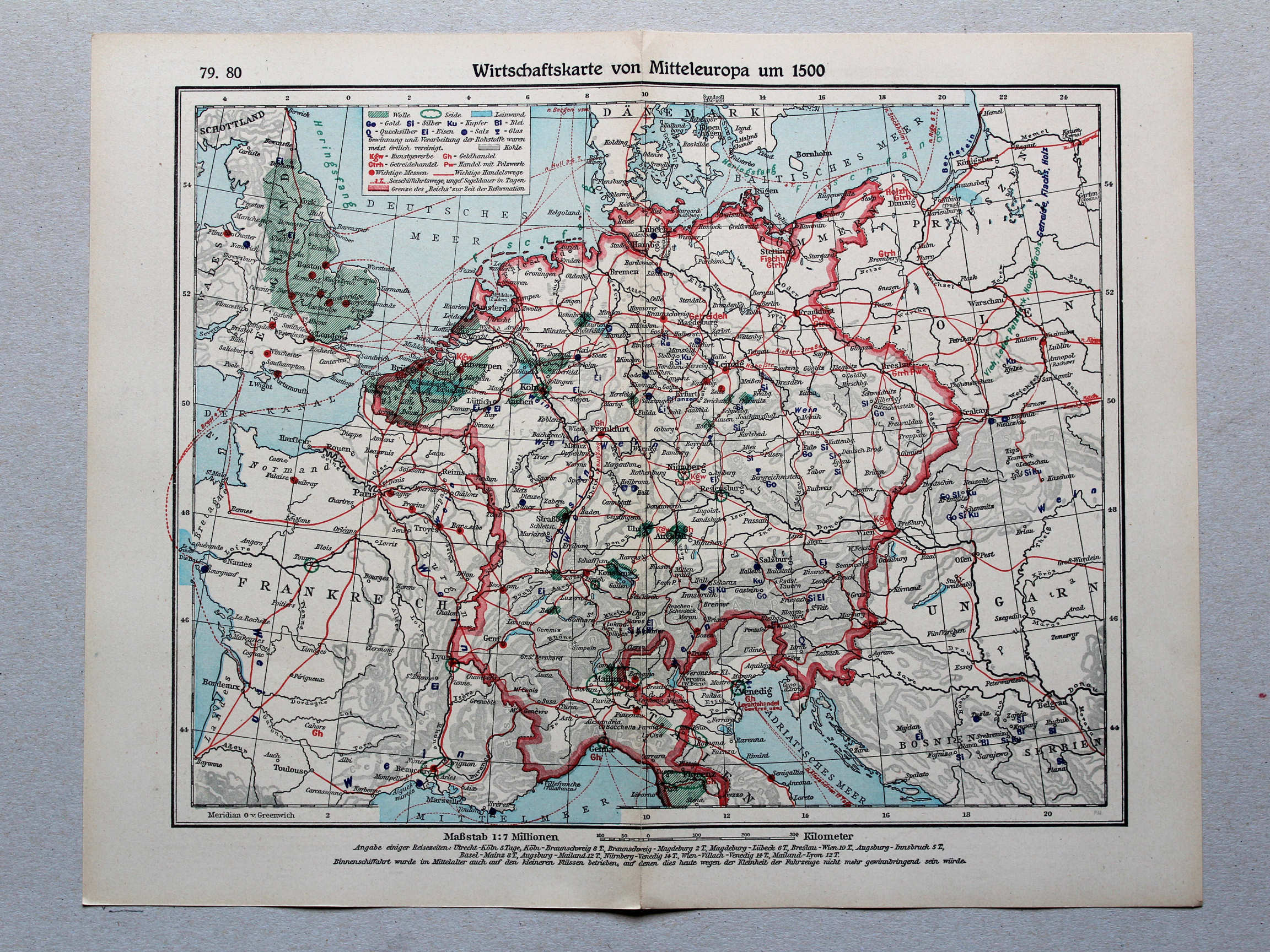 79.80. Wirtschaftskarte von Mitteleuropa um 1500