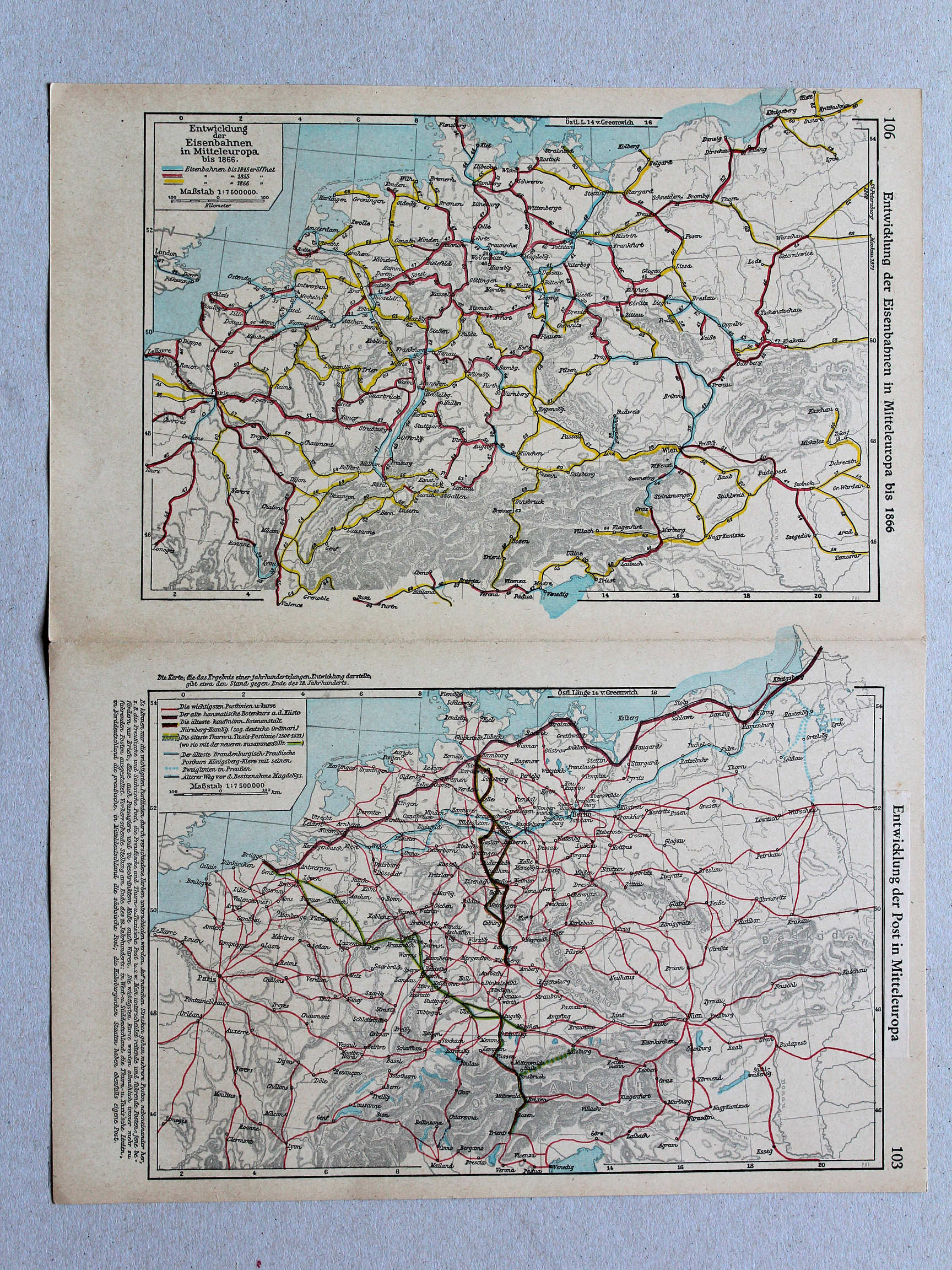 106. Entwicklung der Eisenbahnen in Mitteleuropa bis 1866
