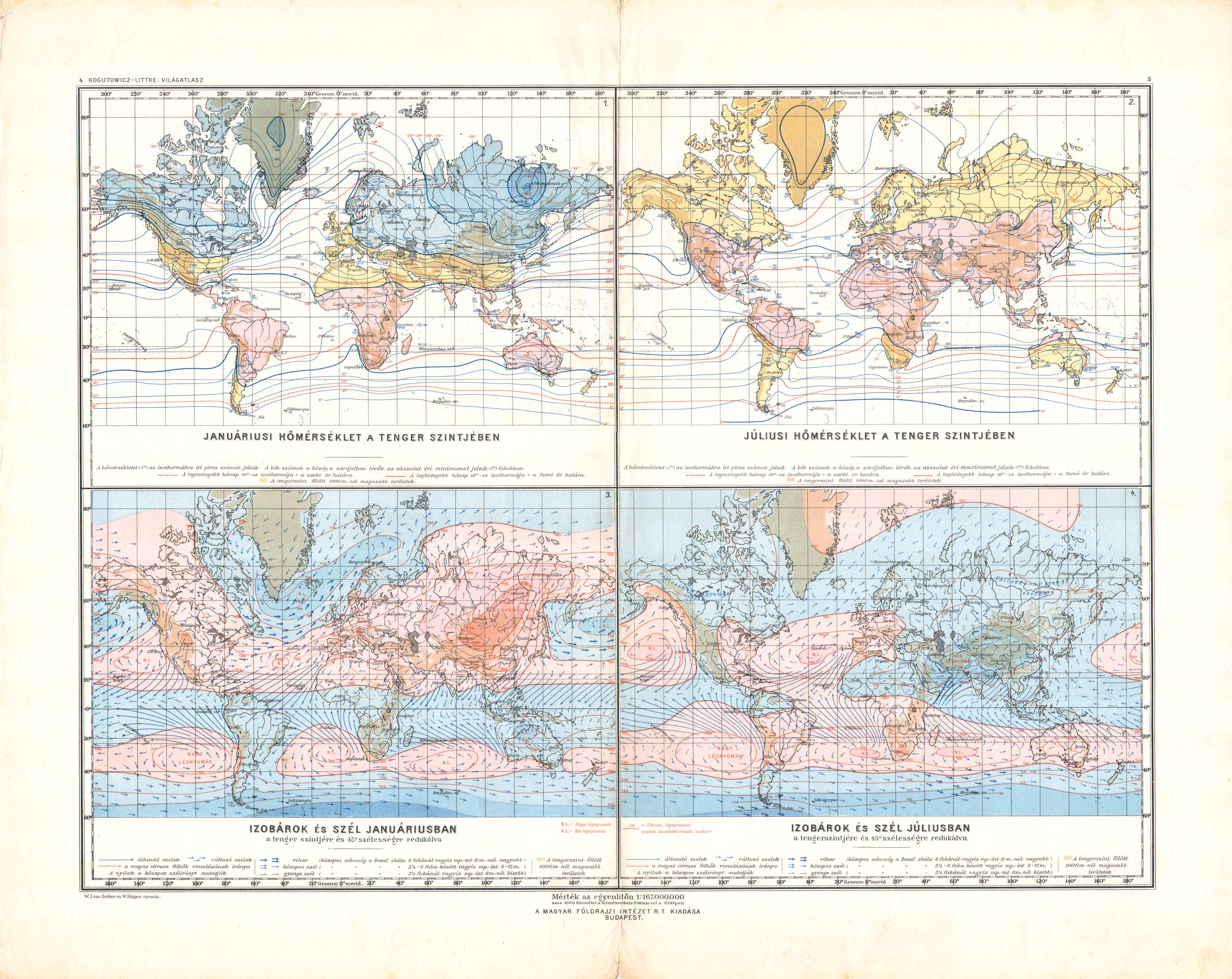 4-5. [Világtérképek: hőmérséklet, izobárok és szél]