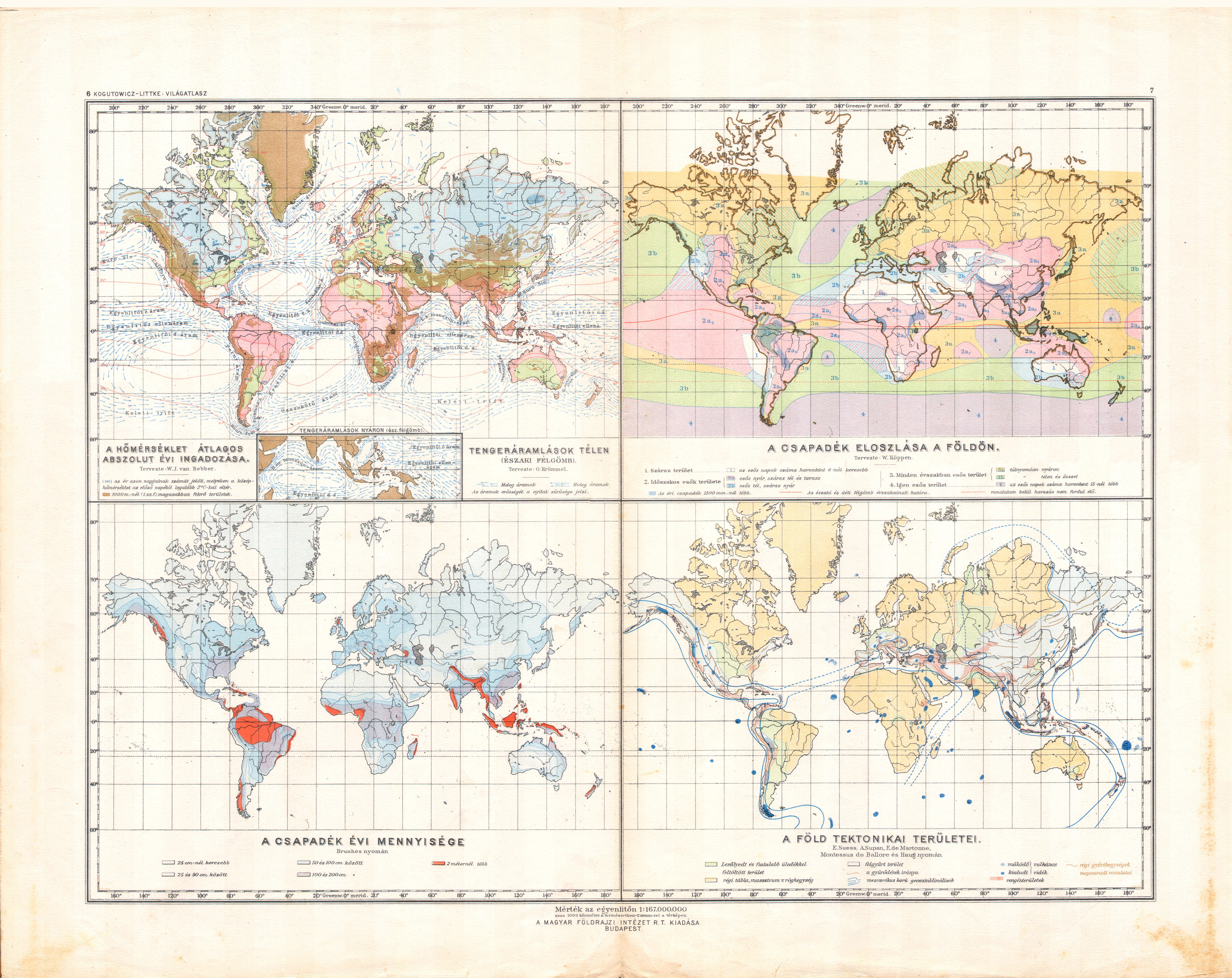 6-7. [Világtérképek: hőmérséklet ingadozása, csapadék, tektonika]