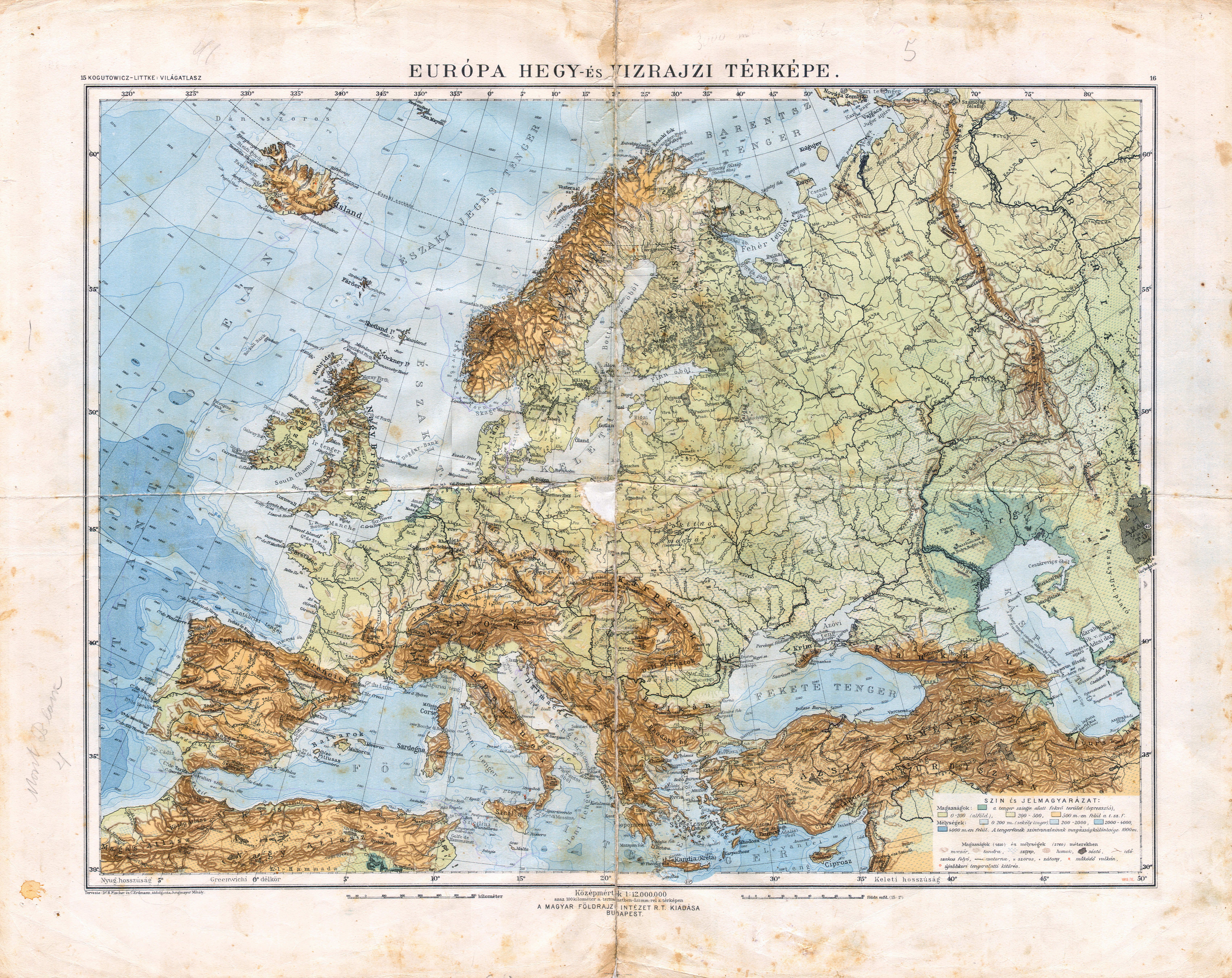 15-16. Európa hegy- és vizrajzi térképe