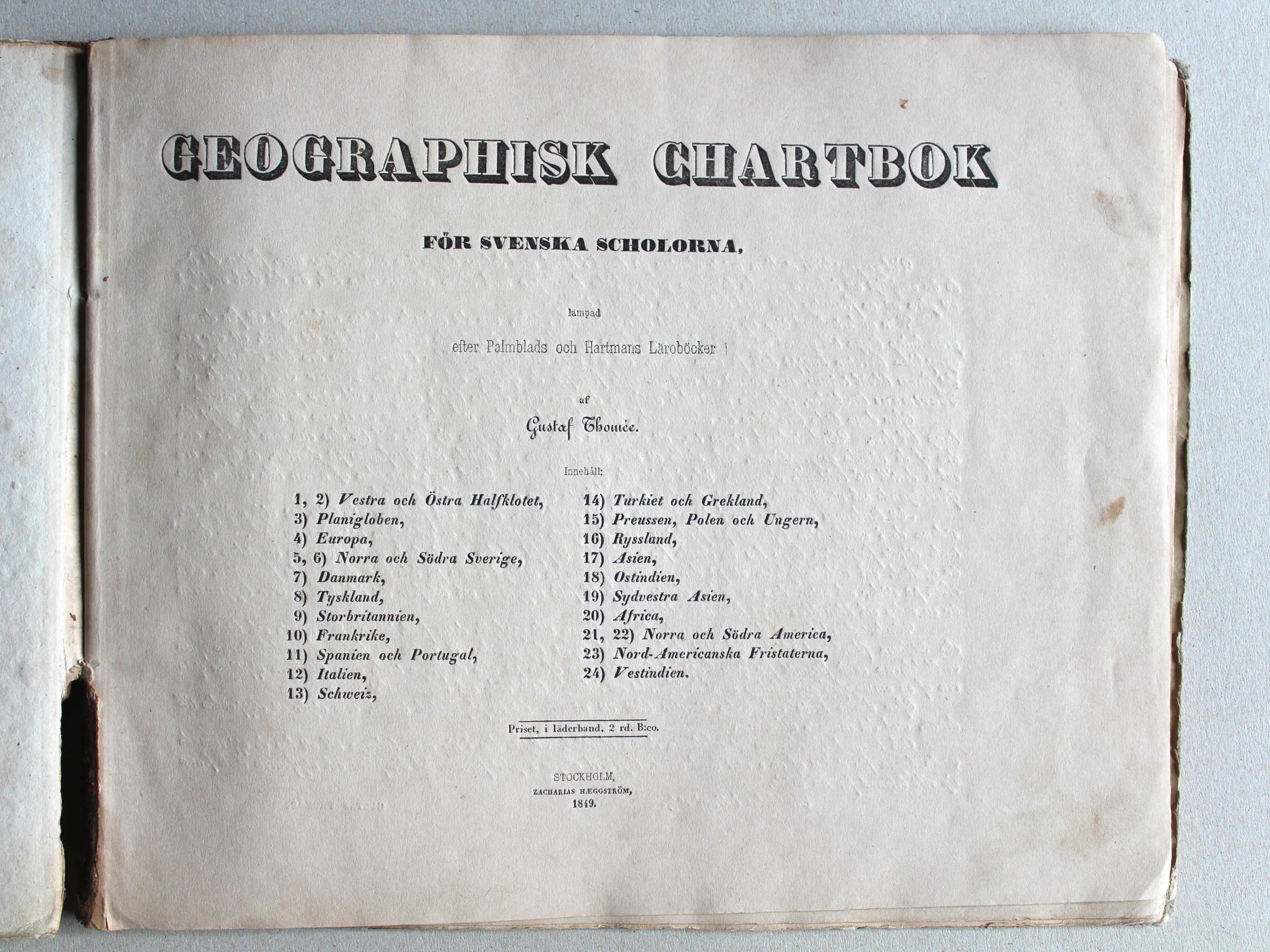 Gustaf Thomée, Geographisk Chartbok [1st edition] (1849)